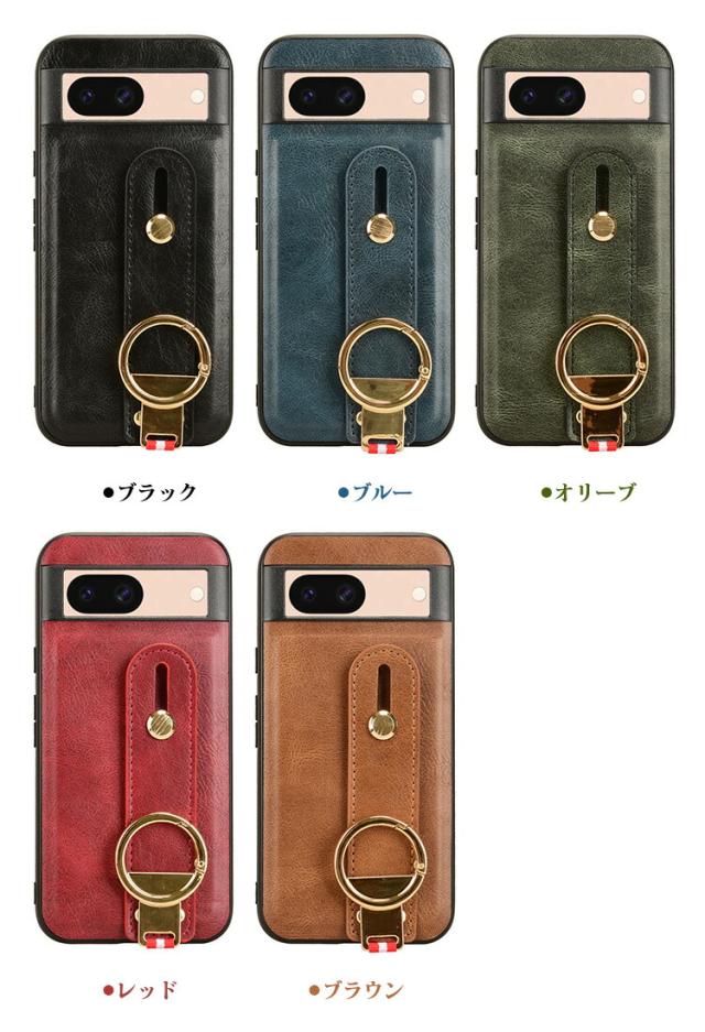 Pixel8a ケース 耐衝撃 カバー PUレザー+プラスチック 持ち手 ベルト 落下防止ベルト リング付き 可愛い/かわいい エレガント レディース スマホベルト 片手操作 取っ手 シンプル Google グーグル ピクセル8a 保護ケース アンドロイド おすすめ おしゃれ