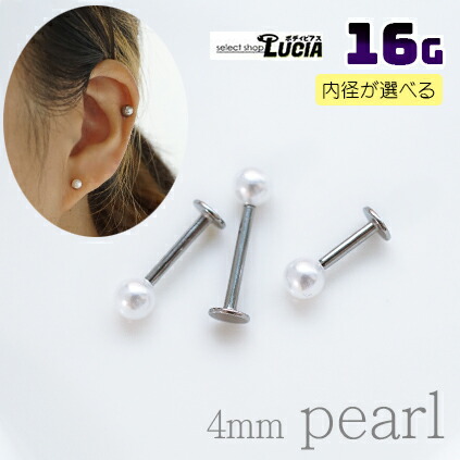 本日P2倍 16G ピアス ボディピアス パール ラブレット スタッド 金属アレルギー対応 つけっぱなし