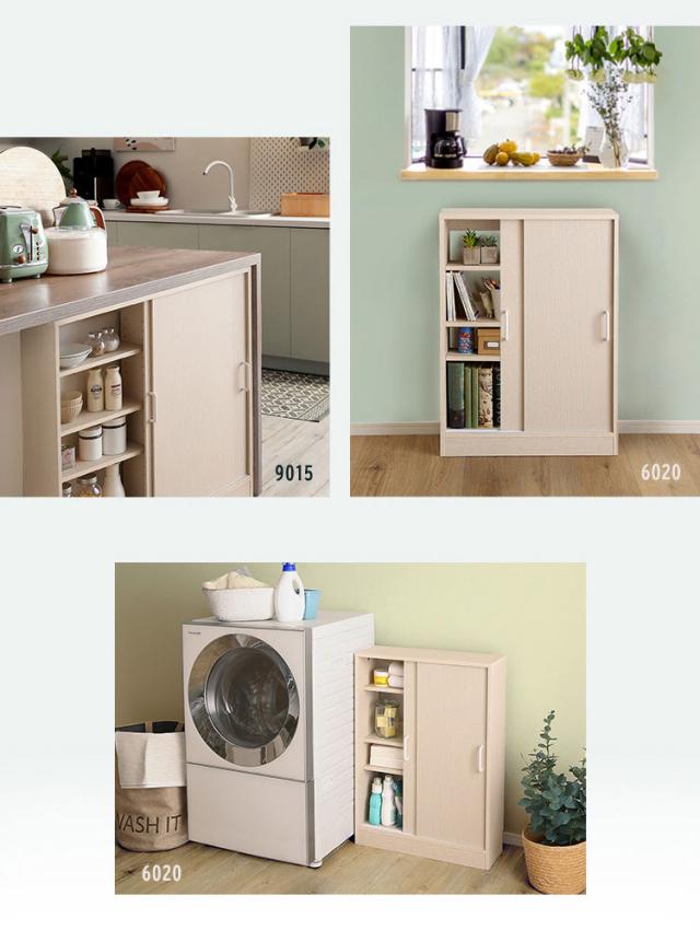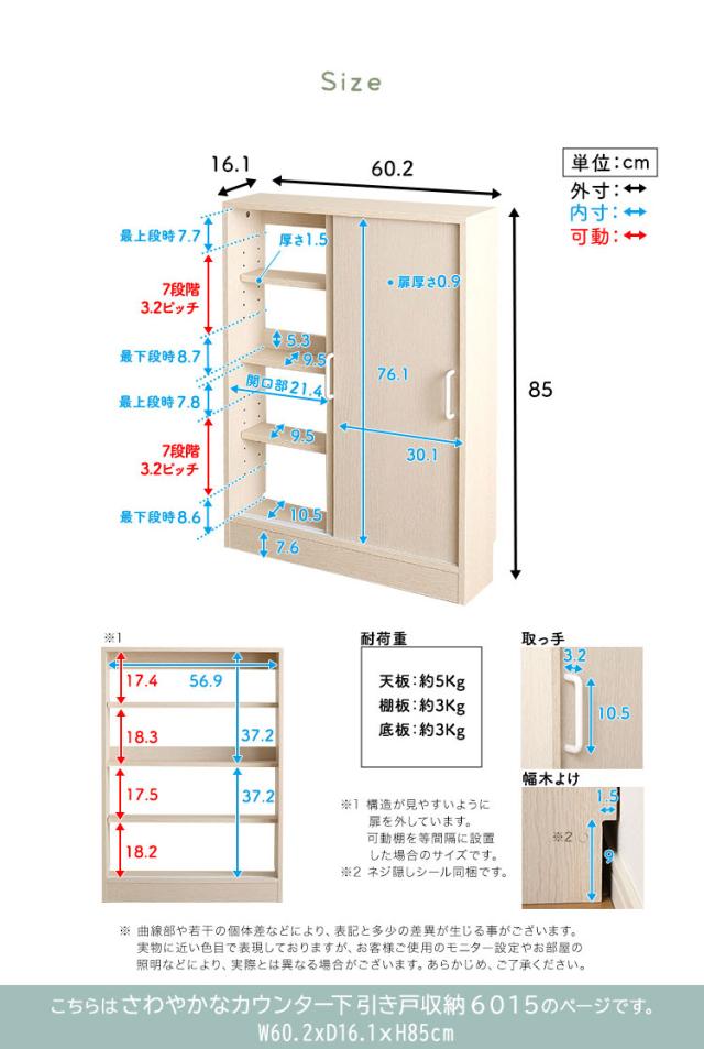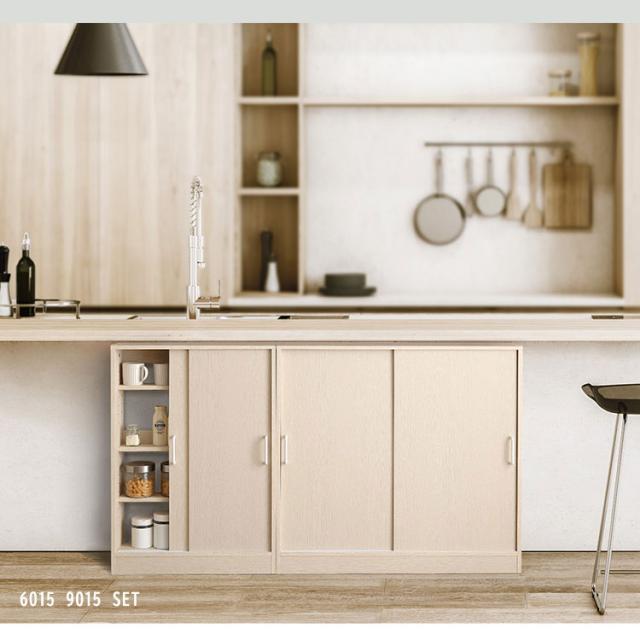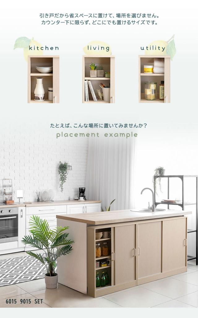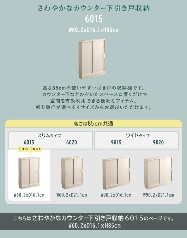 さわやかなカウンター下引き戸収納6015 カウンター下収納 引き戸 薄型 幅60cm 奥行15cm キッチン カウンター下 収納 スリム 食器棚 ミニ食器棚 ロータイプ カウンター収納 薄型収納 ラック 台所 棚(代引不可)【送料無料】