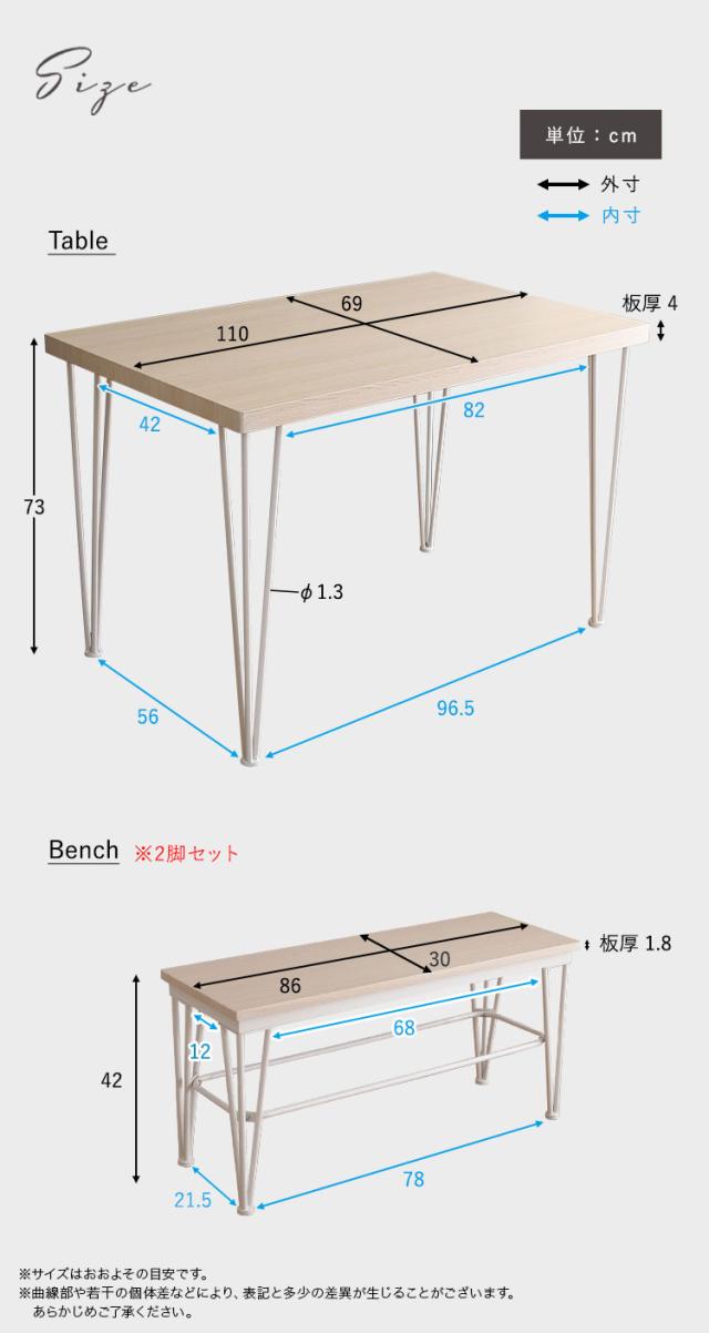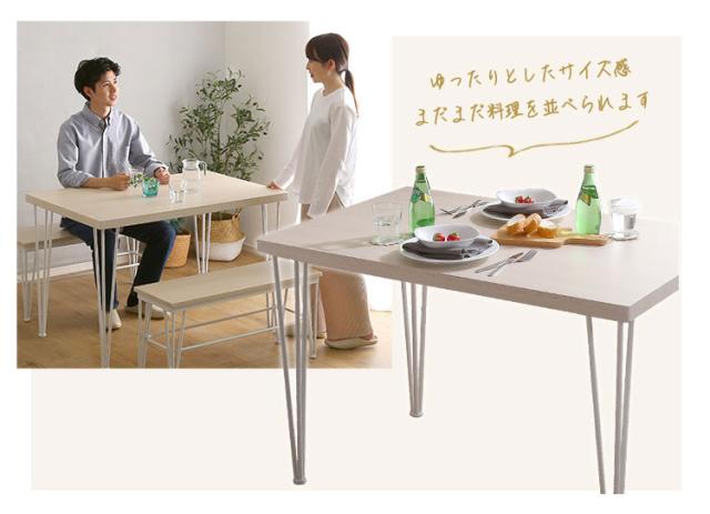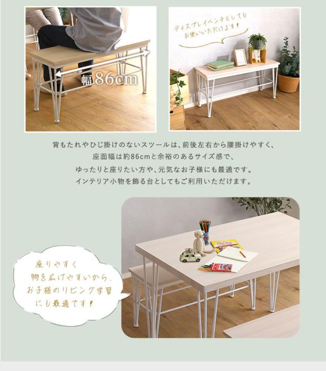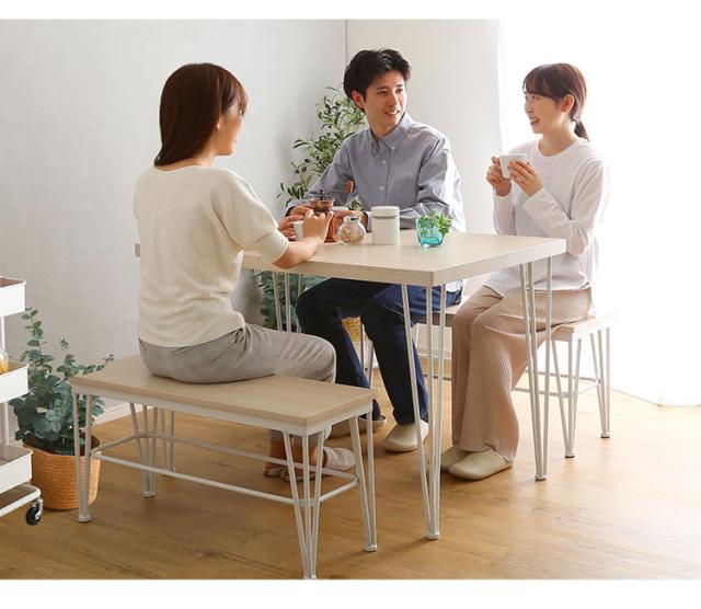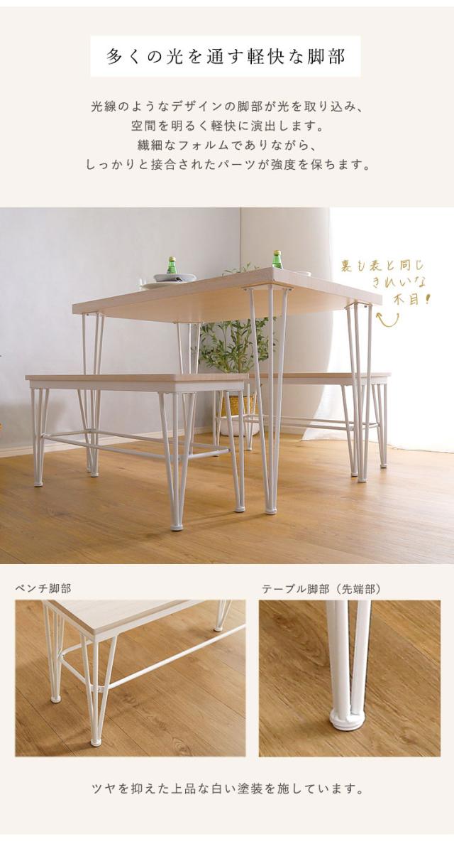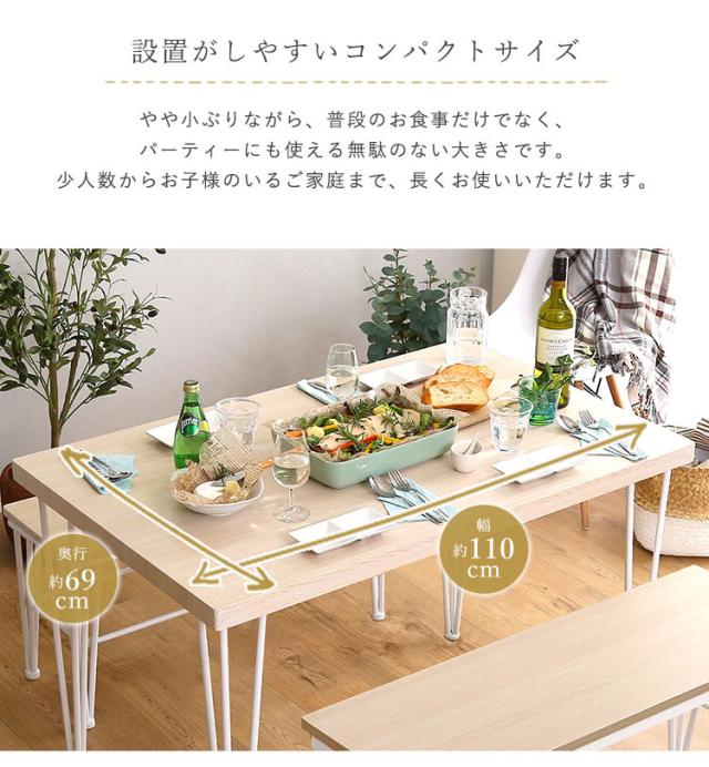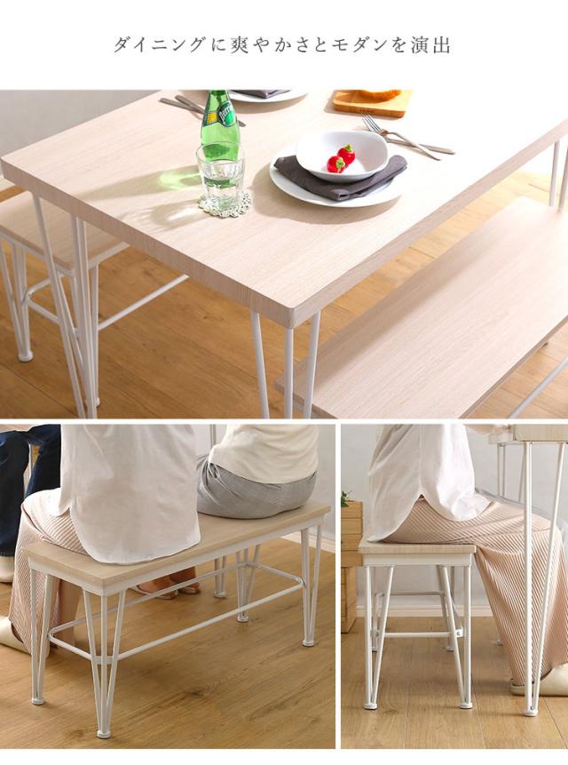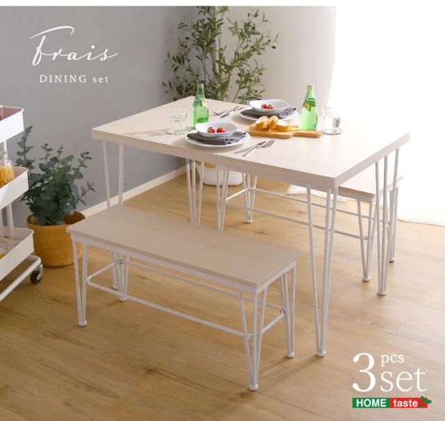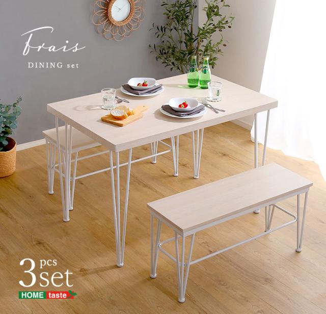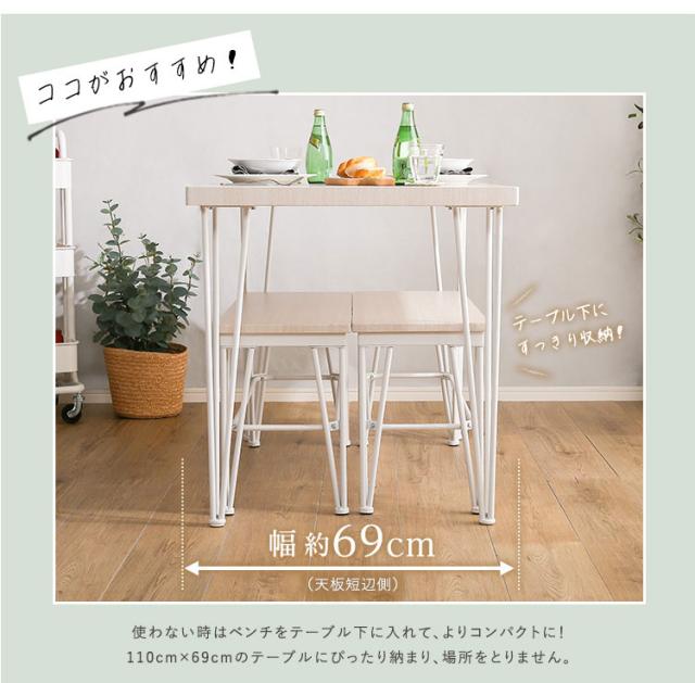 さわやかなダイニング3点セット【テーブル+ベンチ2脚】 ダイニングテーブル さわやか ホワイト アイアン テーブル ベンチ 4人掛け 3点セット コンパクト(代引不可)【送料無料】