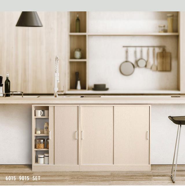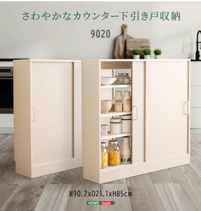 さわやかなカウンター下引き戸収納9020 カウンター下収納 引き戸 薄型 幅90cm 奥行20cm キッチン カウンター下 収納 スリム 食器棚 ミニ食器棚 ロータイプ カウンター収納 薄型収納 ラック 台所 棚(代引不可)【送料無料】