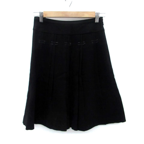 【中古】アンタイトル UNTITLED プリーツスカート ひざ丈 ウール 2 黒 ブラック /HO46 レディース