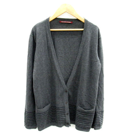 【中古】コントワーデコトニエ カーディガン ミドル丈 Vネック ボーダー柄 オーバーサイズ S グレー /SY27 レディース