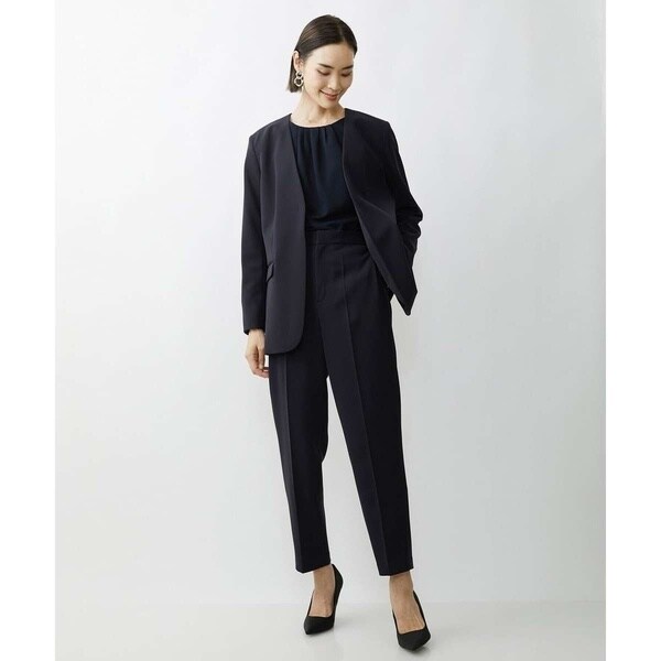 ミッシェルクラン(MICHEL KLEIN)/[小さいサイズ]ストレッチツイルノーカラージャケット(総裏)/セットアップ対応