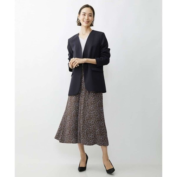 やや長めのレングスのジャケットは、ロング丈のスカートとも相性がよくすっきりと合わせられます。オールシーズン対応してくれるジャケットは冬にはニットをあわせても◎。ベーシックなネイビーとブラックでご用意いたしました。
