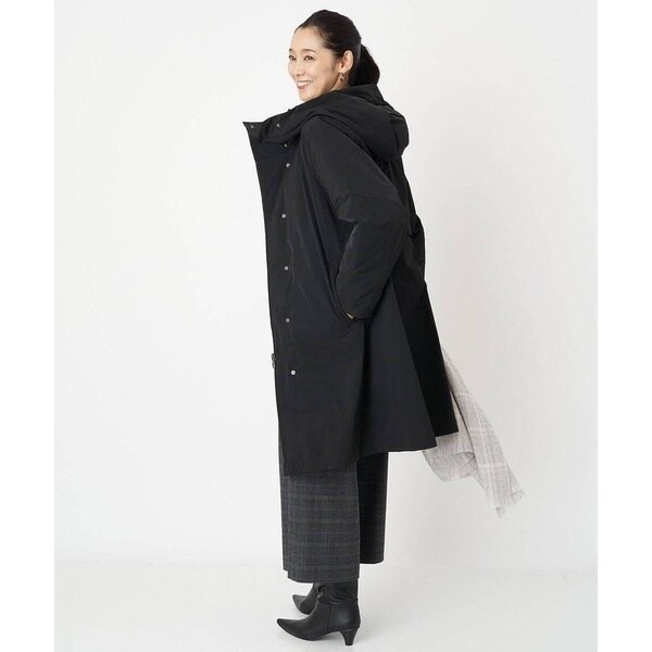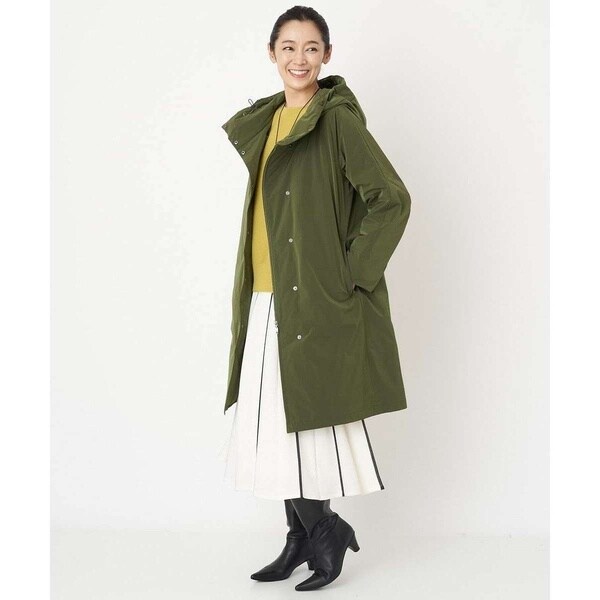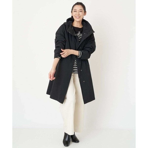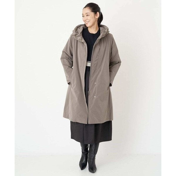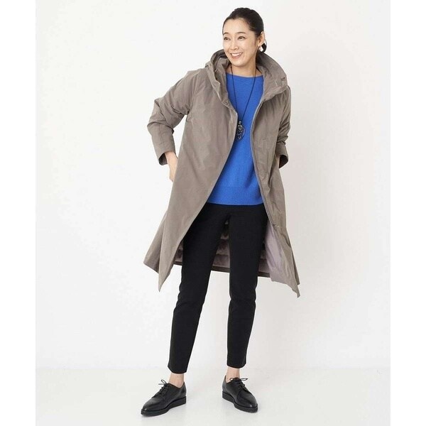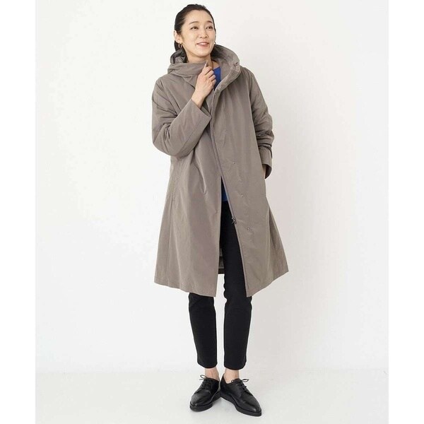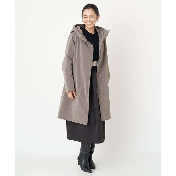 裾にかけてほんのりと広がるAラインシルエットで美しいフォルムのダウンコート。フードは内側のファスナーを外すと大きく被れる仕様となっており、ファスナーを閉じてフード外側のタブで留めると小さくなりフードの形状変化を楽しめます。切り替えデザインのお袖は肘の辺りに自然なカーブを施しているので、スムーズに肘の曲げ伸ばしをしていただけます。ステッチレス仕様で着膨れしがちなダウンコートスタイルがすっきりとスタイリッシュに着用いただける嬉しいデザイン。アウトドア感が抜けて大人のタウンカジュアルにアップデートした一着です。