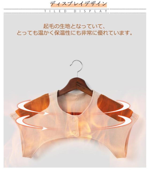 | 羽織るだけで肩をやさしくじんわり温める肩ウォーマー! 起毛の生地となっていて、とっても温かく保温性にも非常に優れています。 肩のダルさや、疲労、重さなどを感じている方におすすめです。 ボタンが付いているので着ていてもズレたりすることがないです。 肩甲骨から肩周りをやさしく温めて、身体の冷えをカバーします。 家や仕事場、就寝時になどあらゆる場面で活躍します。 | |