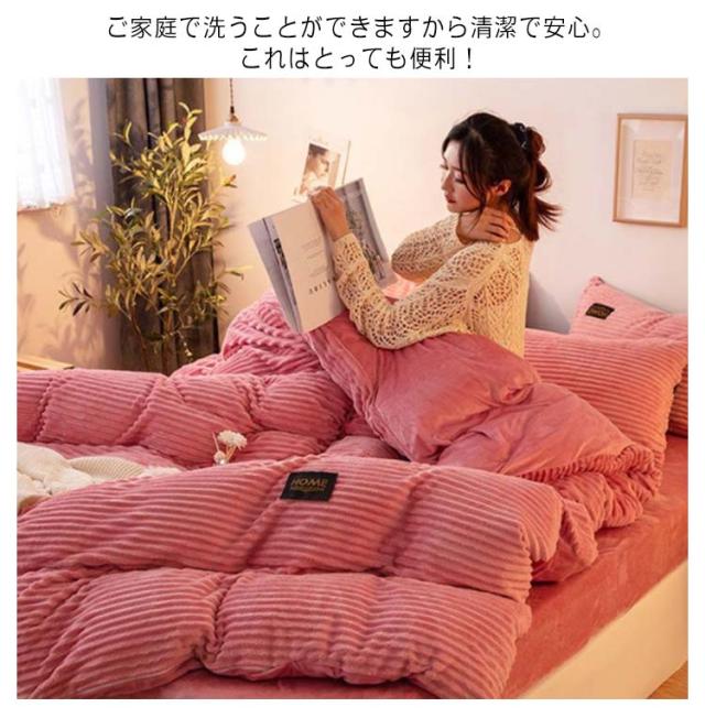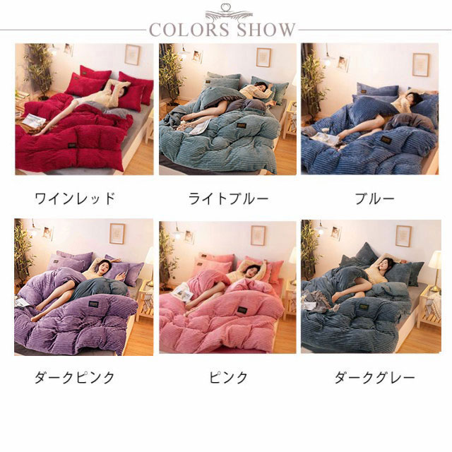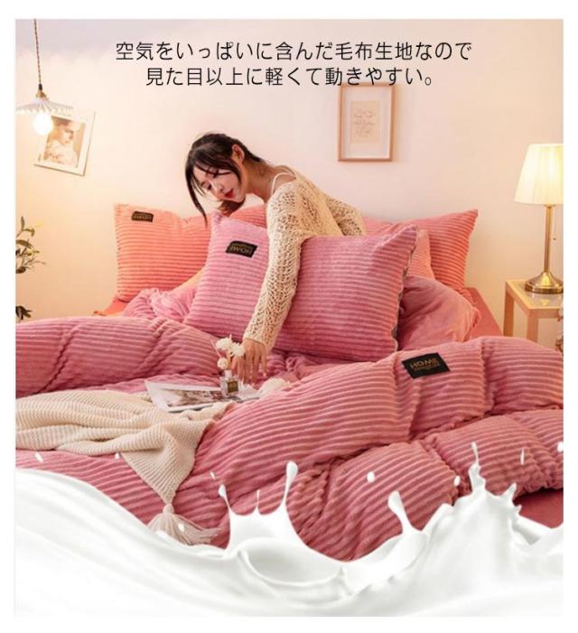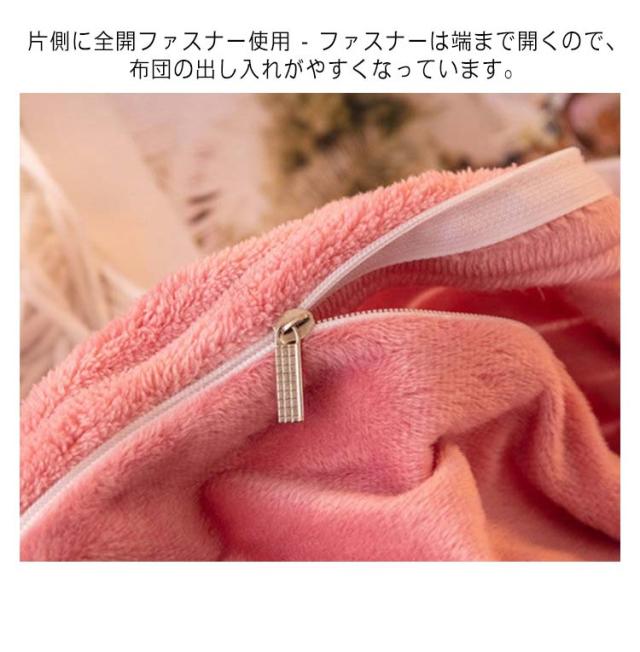 | 3点セット!フランネル繊維を表生地に使用した、おしゃれで暖かい布団カバーセットです。 封筒枕カバー、ファスナーなし、出し入れが簡単、お子様にも安心してお使いいただけます。 空気をいっぱいに含んだ毛布生地なので見た目以上に軽くて動きやすい。 片側に全開ファスナー使用 - ファスナーは端まで開くので、布団の出し入れがやすくなっています。 暖かいので寒い時期は大活躍。保温性が高い、これからの季節に重宝すると思います。 布団に入った時のヒヤっと感が少なく、秋冬の快適な入眠をサポートします。 ご家庭で洗うことができますから清潔で安心。これはとっても便利! | |