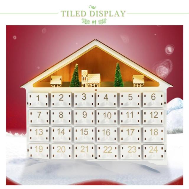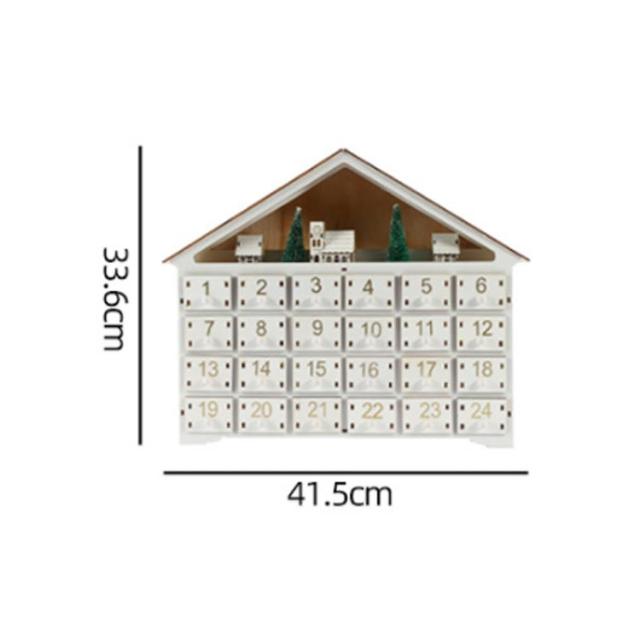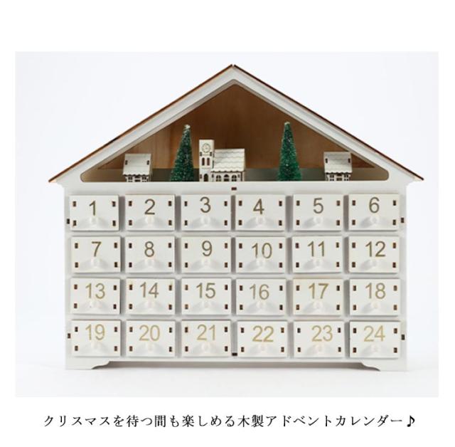 アドベントカレンダー 木製 24日間 カウントダウン カレンダー クリスマス オーナメント 置物 クリスマスカレンダー クリスマス カウントダウン 24個 引き出し 白い家 LEDライト付き 北欧 インテリア 小物入れ お菓子 おもちゃ キャンディー 子供 プレゼント 送料無料