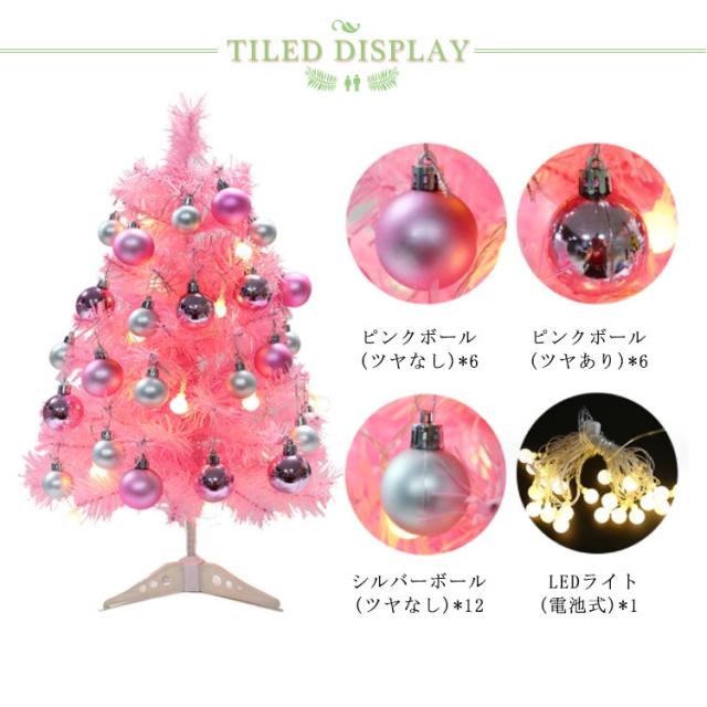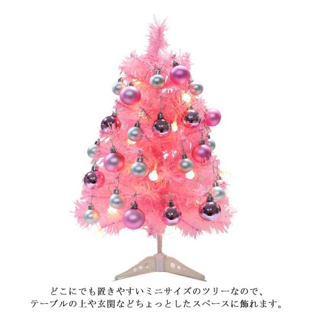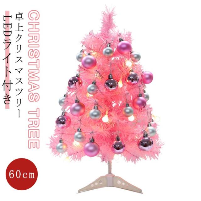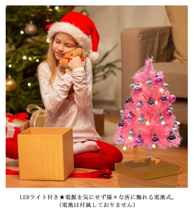 ピンク クリスマスツリー 卓上 60cm ミニ クリスマスツリー オーナメント付き 北欧 ミニツリー クリスマス 飾り LEDライト付き イルミネーション 電池式 卓上ツリー 小型 キラキラ クリスマス オーナメント 部屋 店舗 玄関 インテリア 送料無料