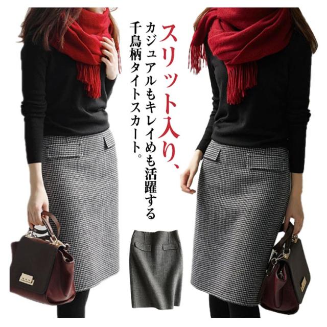 タイトスカート ひざ丈スカート レディース 千鳥柄 スカート ボトムス スリット オフィス エレガント上質 フォーマル オフィス 入学式 お受験 卒園式 卒業式 上品 30代 40代 50代 着やせ 大人 春 秋 冬 キレイめ 送料無料