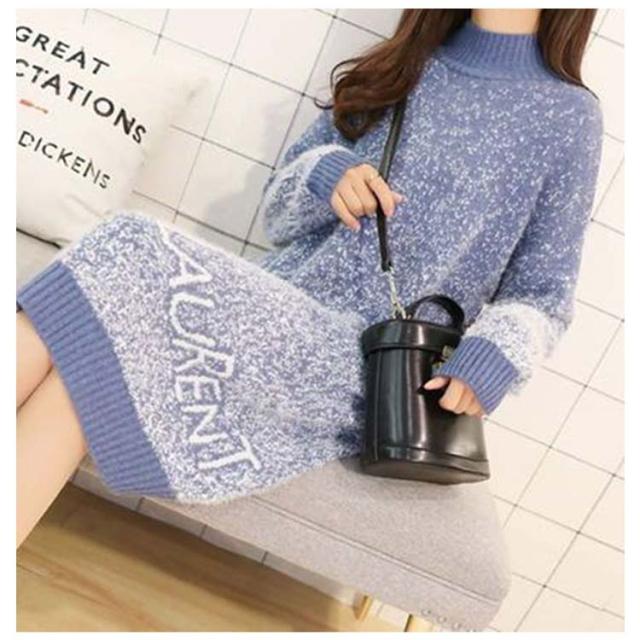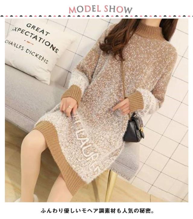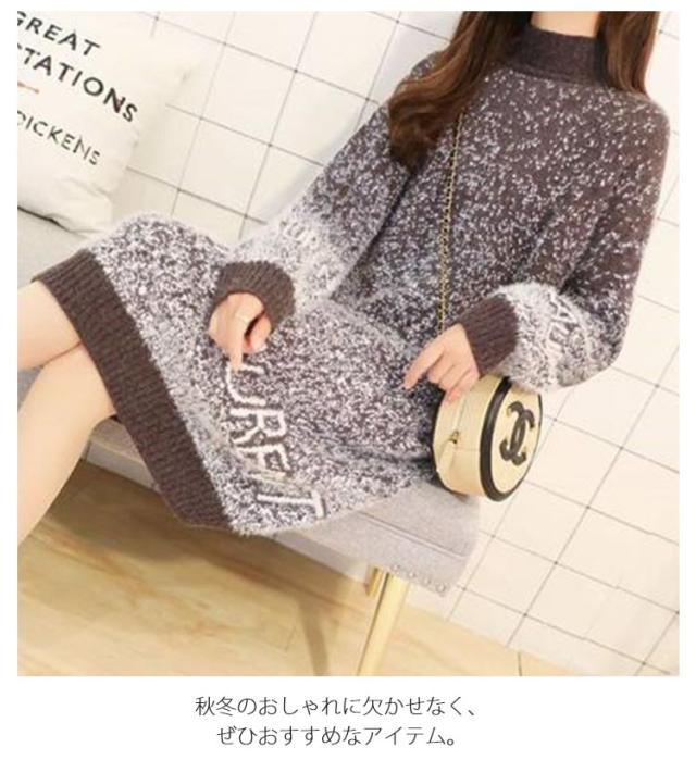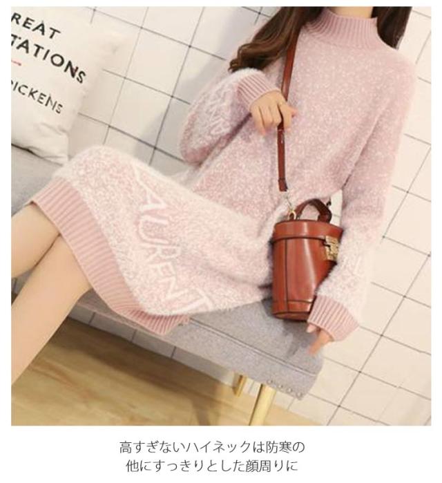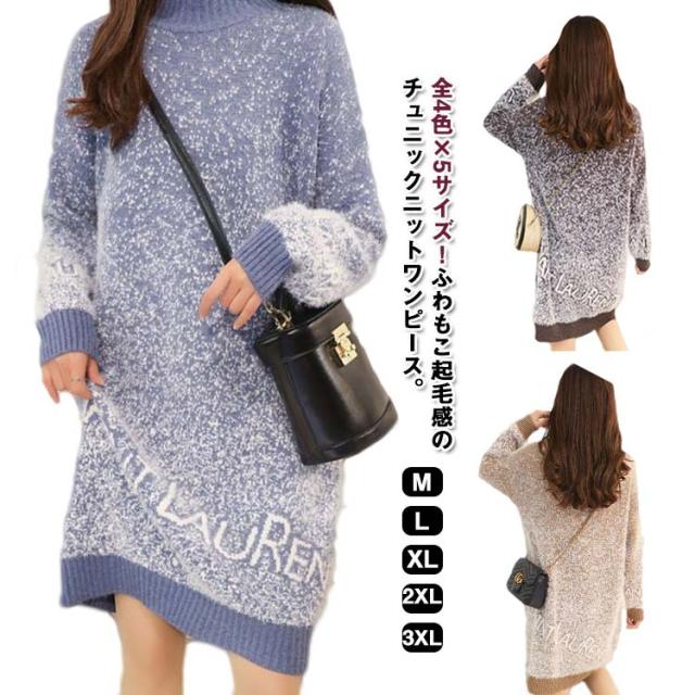 シャギーニット ニットワンピース ミニ丈 チュニックワンピース ロングセーター ハイネック ニット セーター ロング ふわふわ もこもこ チュニック トップス 秋 冬