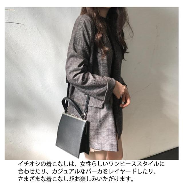 | シックなグレンチェックがメンズライクに決まって大人コーデに♪ 羽織るだけでトラッドな雰囲気漂い、襟元を細めに設計し、シャープで女性らしい仕上がりになりました。 気分が高まるシックなチェック柄ジャケット、シックなカラー配色が、羽織るだけで秋冬気分を高めてくれます。きちんと感がありながらも、ややゆったりとしたサイジングがこなれた着こなしに昇華できます。 イチオシの着こなしは、女性らしいワンピーススタイルに合わせたり、カジュアルなパーカをレイヤードしたり、さまざまな着こなしがお楽しみいただけます。 | |