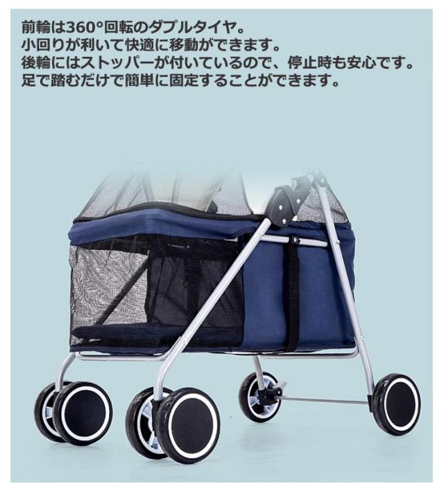 多頭 ペットバギー 小型犬 猫 通気 犬用 バギー 低い ペットカート 省スペース 耐荷重15kg 飛び出し防止 ポケット付き 中型犬 折りたたみ式 ドリンクホルダー 軽量 通院 お散歩カー 使いやすい 4輪 無地 ギフト プレゼント 折りたたみ