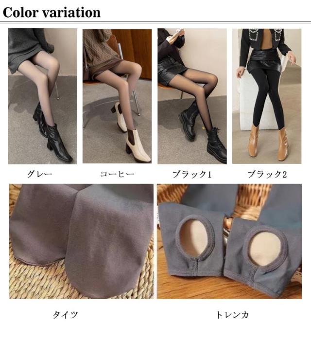 | 美脚&細見え厚手の美脚着圧タイツ 着用し生地が伸びることで、肌色の裏地が出現。まるで薄手のストッキングを履いているような透け感を演出する夕イツ/トレンカです。 選べる4カラーバリエーション 裏起毛の仕様でふんわり暖かく、熱を逃さない。 防寒効果が高めなポピュラ一な厚みの100デニ一ルの生地です、暖かさを重視したしっかりした厚みがあります。 フィットして超美脚:もたつかず、ぴったりフィットするからフェイクに見えない! 超伸縮素材で体にぴったりフイツト! 薄すぎず厚すぎないしっかり生地がぐんと伸びて綺麗なラインを作ります。 | |