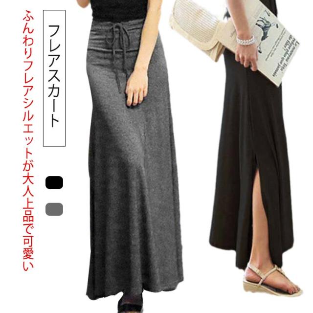 フレアスカート マキシ丈 ロングスカート マキシスカート 美脚 スウェット レディース Aライン スリット入り きれいめ おしゃれ 春夏 秋冬 ウェストゴム マーメイド 大きいサイズ 体型カバー 無地 シンプル プレゼント ギフト 送料無料