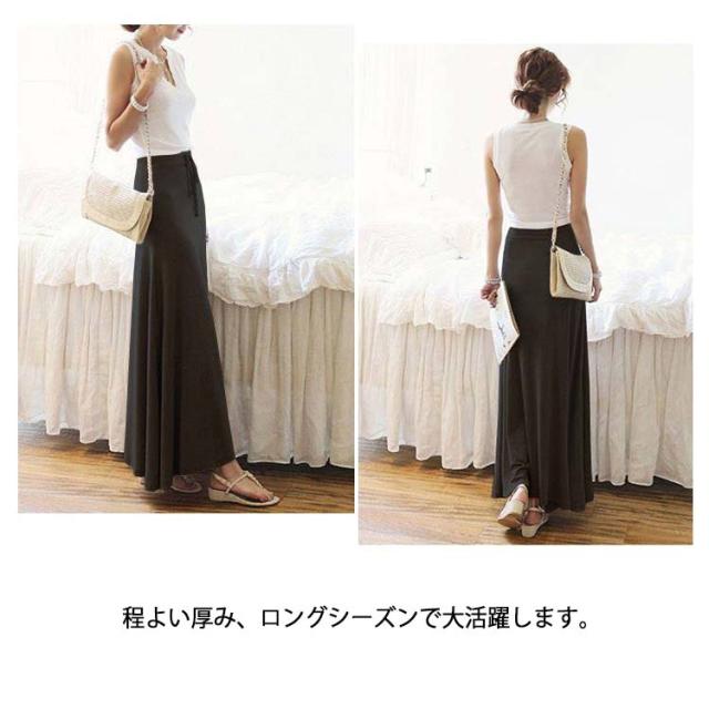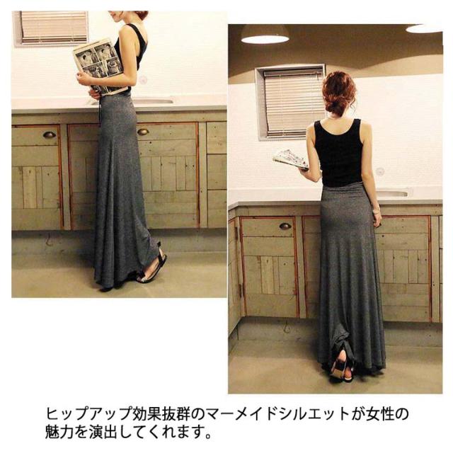 | ふんわりフレアシルエットが大人上品で可愛い 下半身をすっぽり包み込まれるマキシ丈スカート、体型カバーも◎ ヒップアップ効果抜群のマーメイドシルエットが女性の魅力を演出してくれます。 スリット入りで大人の抜け感を演出♪ 程よい厚み、ロングシーズンで大活躍します。 | |