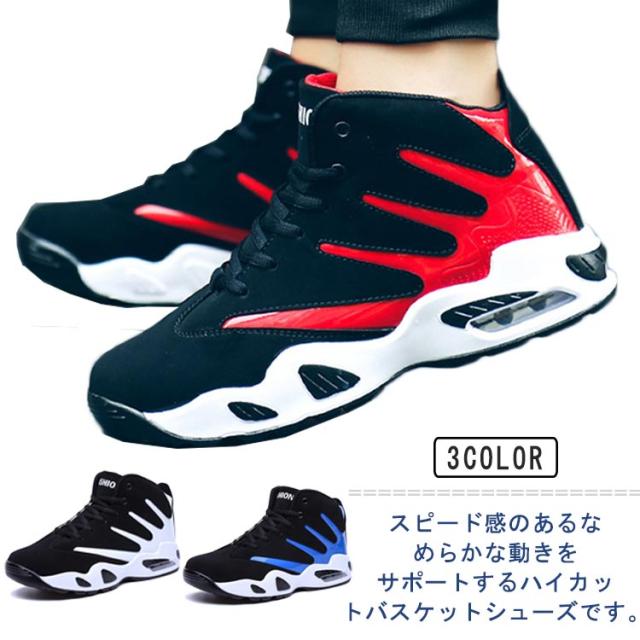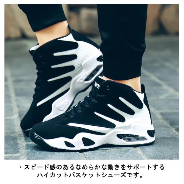 スニーカー メンズ ハイカット バスケットシューズ バッシュ スポーツスニーカー ジュニア エアソール 学生 ユニセックス 軽量 滑り止め 履きやすい 疲れにくい 通気 春 秋