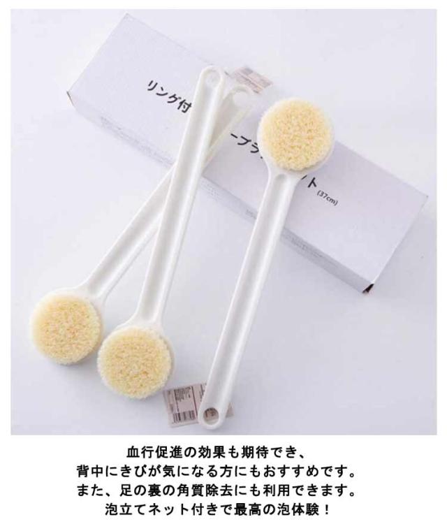 | 柔らかな高品質ナイロンブラシを採用 ヘッド部分には、高品質なナイロンブラシを採用することで、一般的な動物毛よりも衛星面、耐久性、弾力性に優れています。 &角質除去 の効果も期待でき、背中にきびが気になる方にもおすすめです。また、足の裏の角質除去にも利用できます。 泡立てネット付きで最高の泡体験! 背面には泡立てネットがついているので、しっかり濃密な泡を作りナイロンブラシでしっかり垢を落とすことができます。 | |