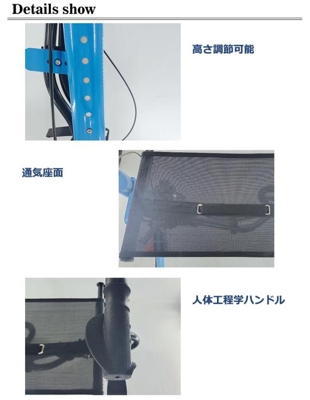 | 折り畳み 多機能椅子付きシルバーカート 車体が広く安定性が良い、座面が広く座り心地が抜群なスタンダートなタイプ。 座面下に大きな収納スペースがあり、お買い物などに便利なシルバーカー。 ハンドルの高さが調節可能。身長に合わせて使いやすい設計。 折りたためてコンパクト。持ち運びも簡単です。 | |