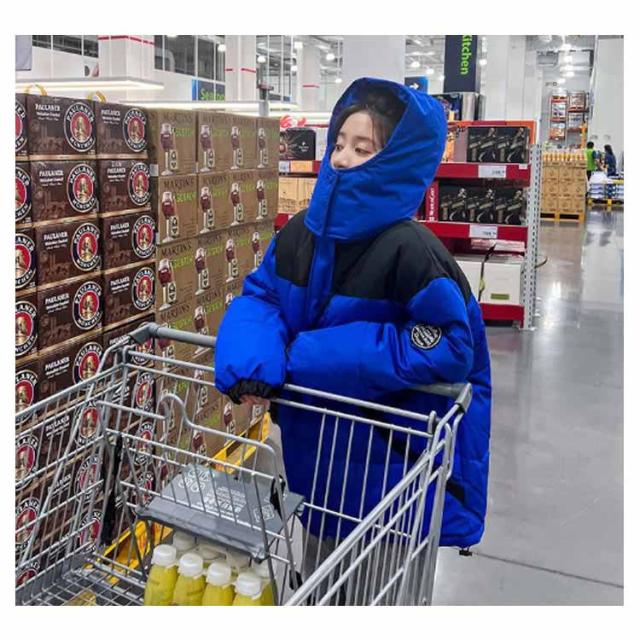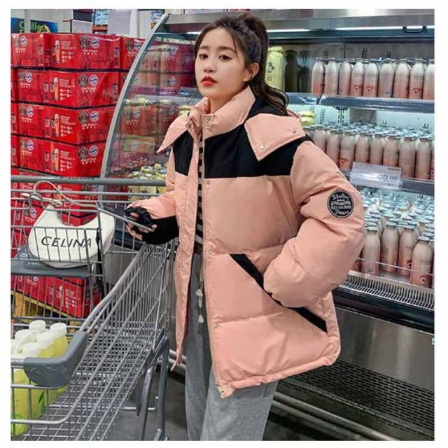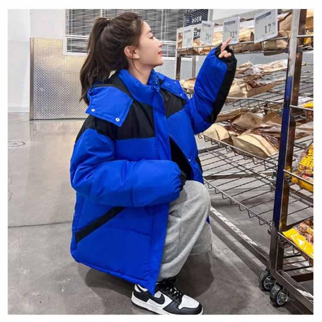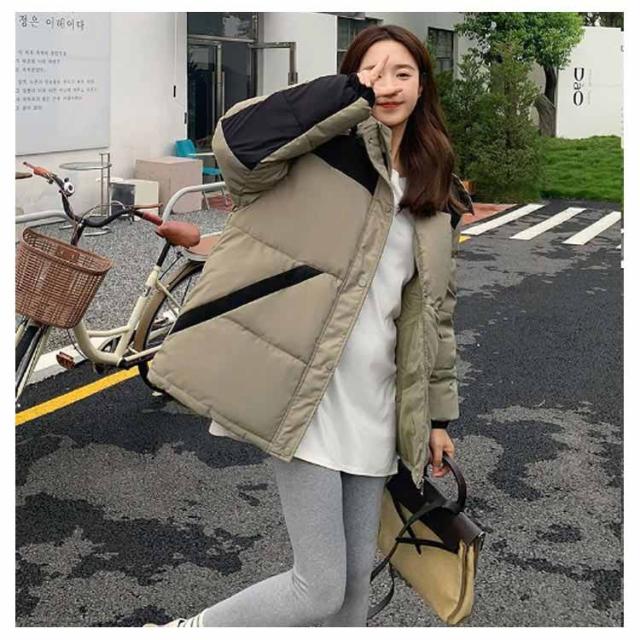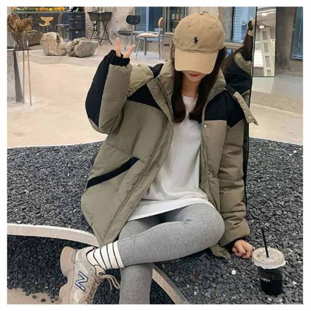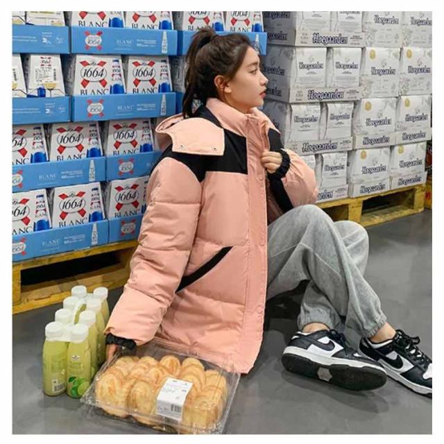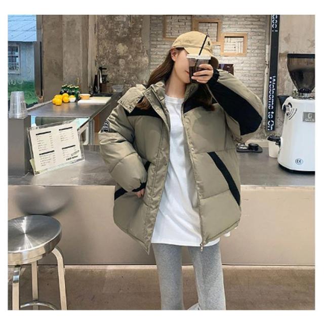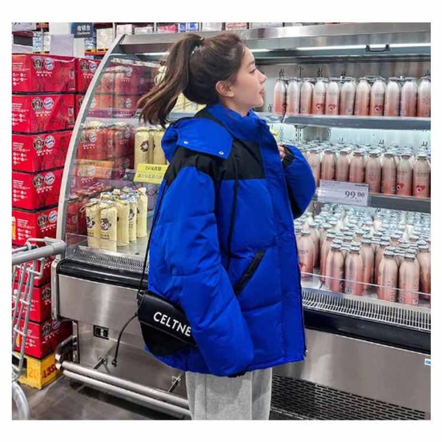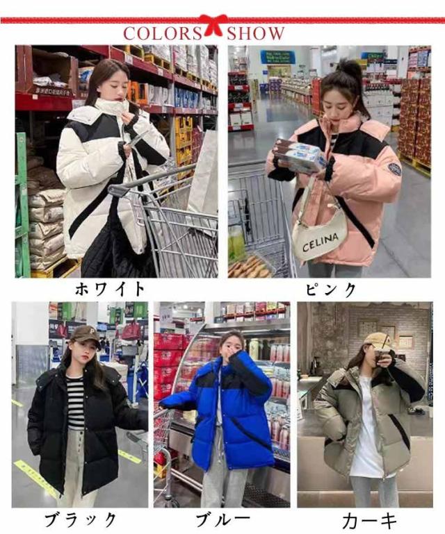 中綿ジャケット 配色 レディース 中綿 ブルゾン ジャケット フード付き ダウンジャケット ダウンコート ショート丈 秋冬 アウター 中綿入り 軽量 厚手 あたっか 防寒 保温 中綿コート 防寒着 ボリューム ゆったり オーバーサイズ フェイクダウン 【送無】