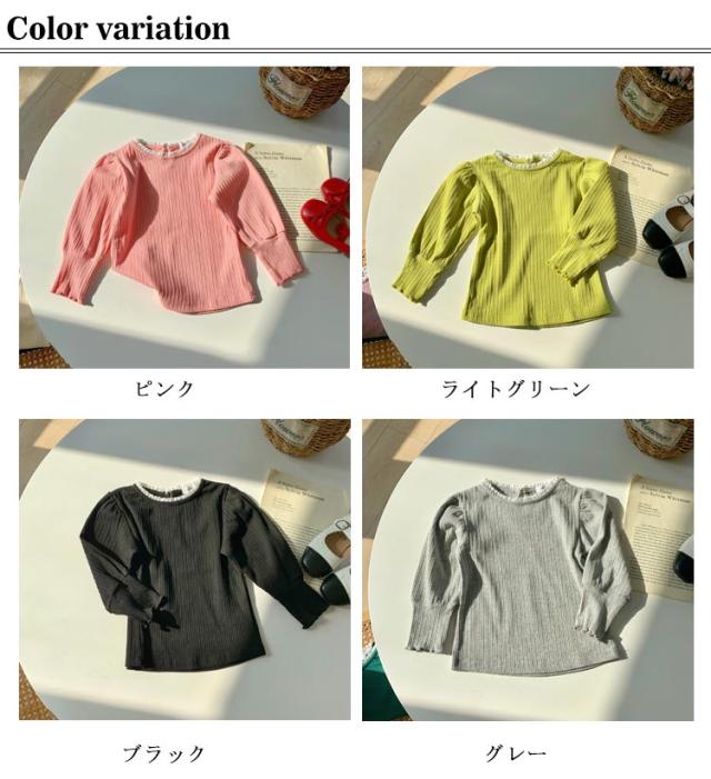 長袖Tシャツ カットソー 子ども服 ロンT 長袖 子供服 トップス 無地 シンプル インナー リブ 女の子 ロングTシャツ リブ 無地 ランタンスリーブ ガールズ 綿 フレア袖 コットン キッズ ジュニア 子供 子ども こども 90cm 100cm 110cm 120cm ベビー