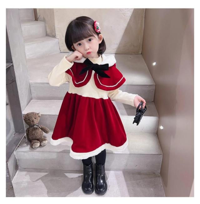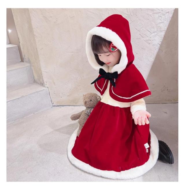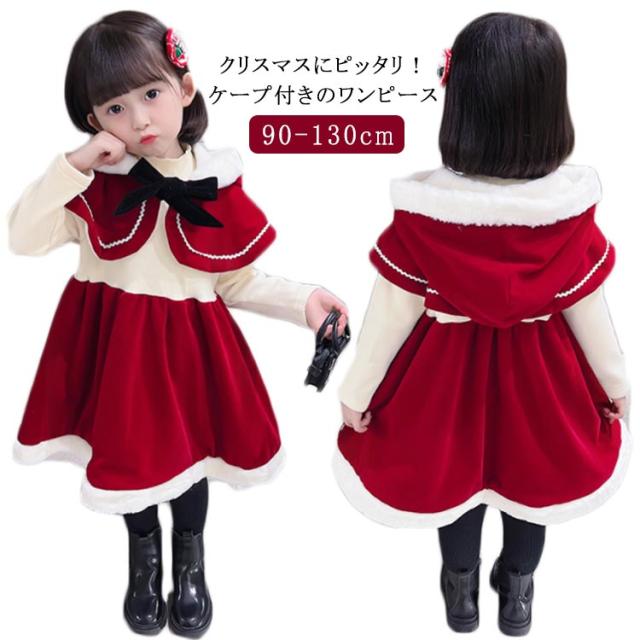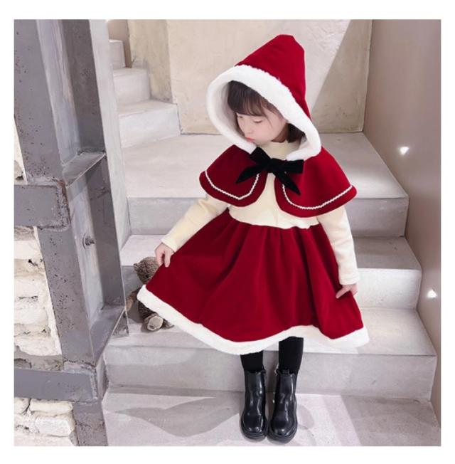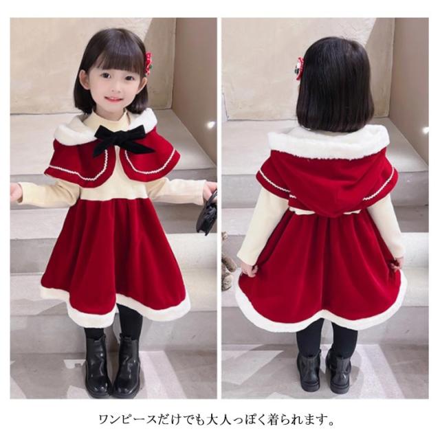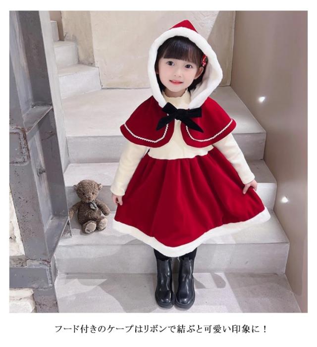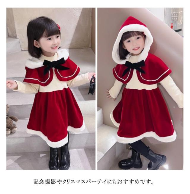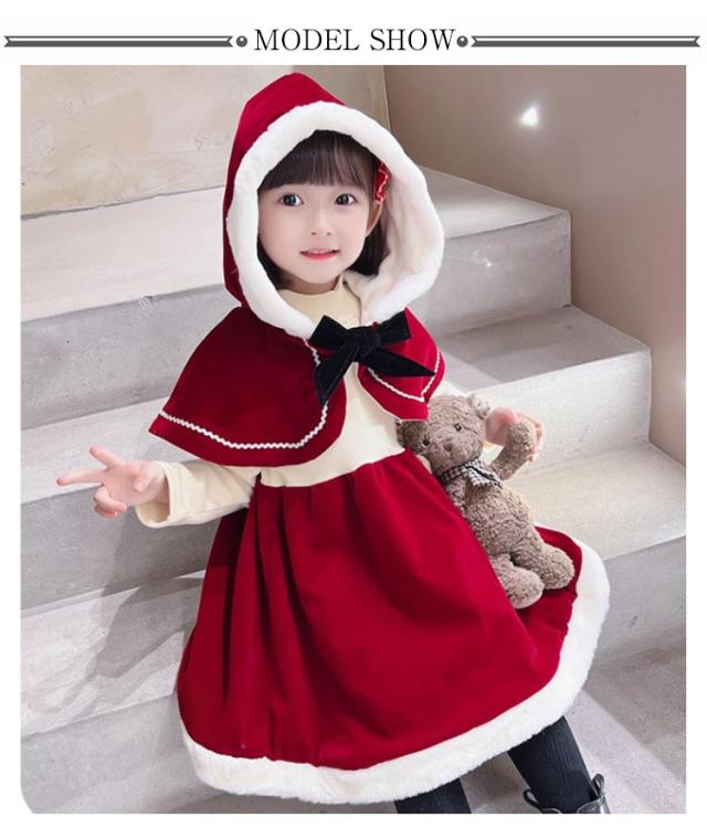 クリスマス ワンピース 女の子 上下セット 長袖 裏起毛 ケープ付き フード付き クリスマス コスプレ 衣装 子供服 防寒 サンタ コスチューム かわいい 洋服 お出かけ