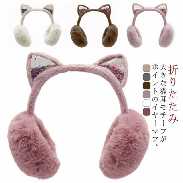 耳当て 耳あて キッズ 子供用 耳あて 折りたたみ 猫耳付き ファー もこもこ ふわふわ イヤーマフ 女の子 ジュニア みみあて ボア素材 防寒 あたっか 耳カバー ネコ 耳付き コンパクト かわいい 通学 通園 暖かい 【送料無料】