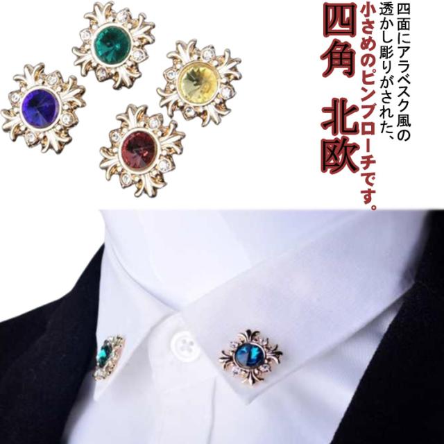 ブローチピン コサージュ ラペルピン ブローチ ピンバッジ ブローチ キラキラ ラインストーン スクエア 四角 北欧 ブローチ アンティーク ブローチ かわいい クリスマス 男性 襟 袖 送料無料 イエロー レッド グリーン ブルー