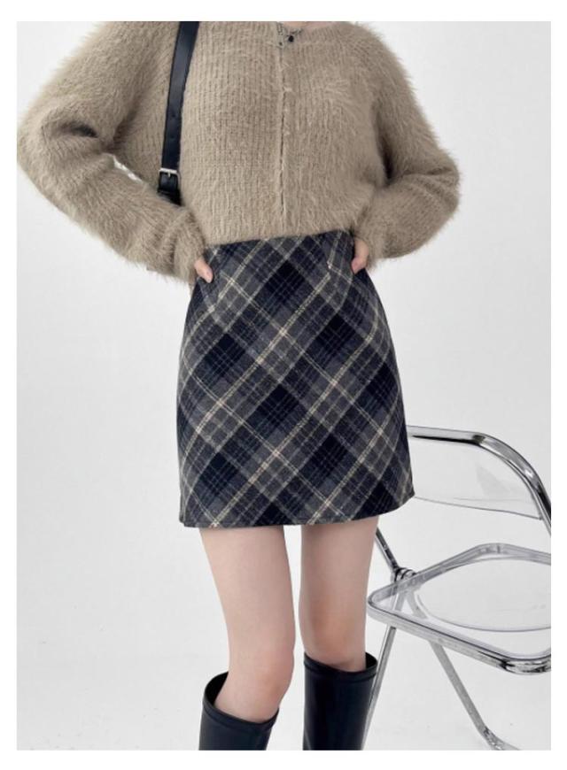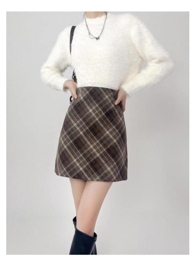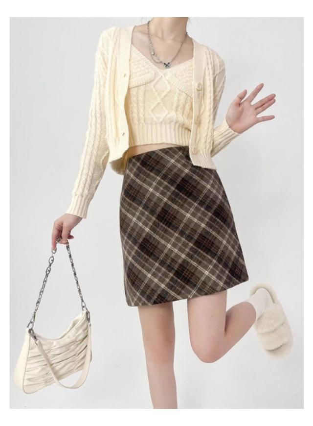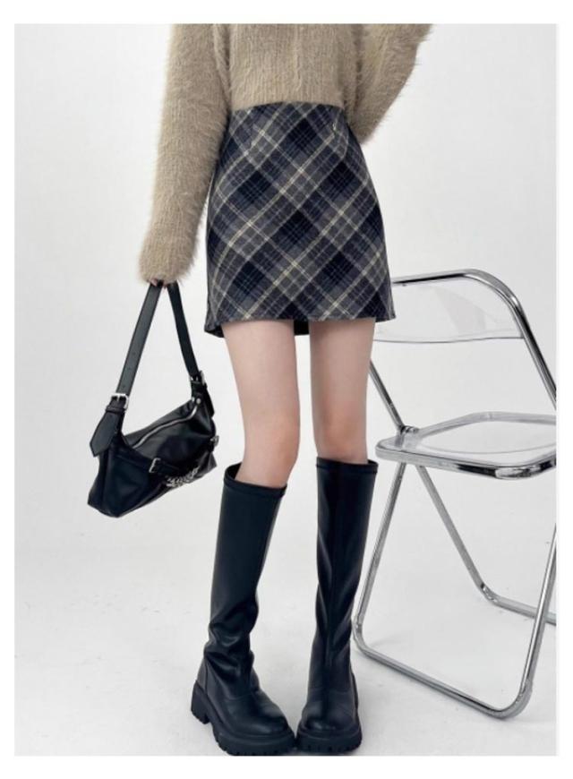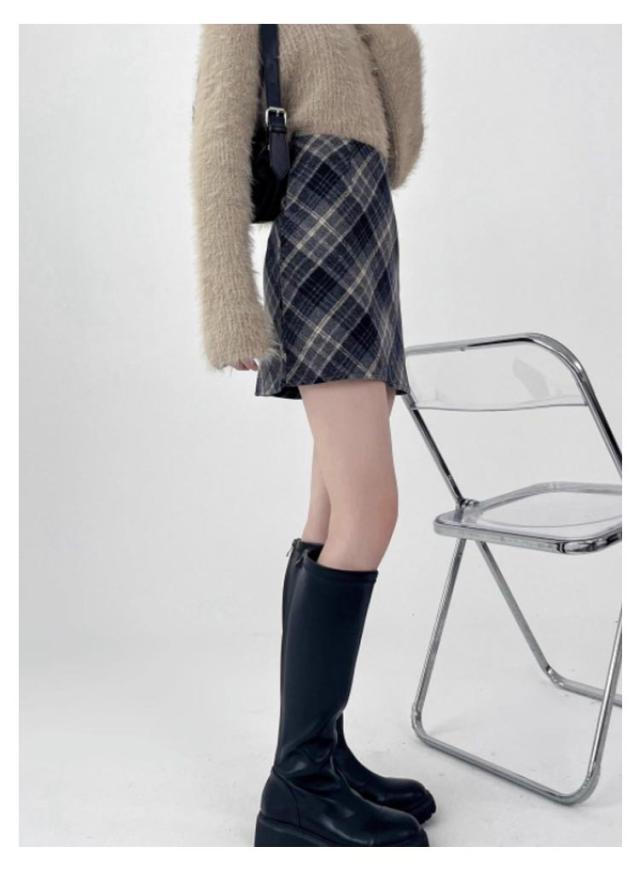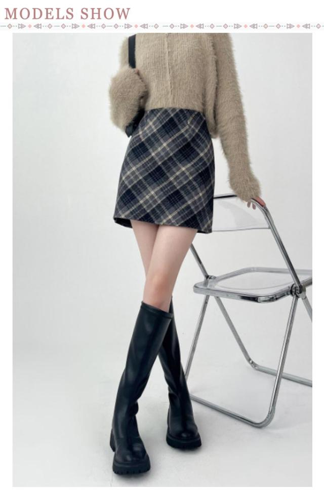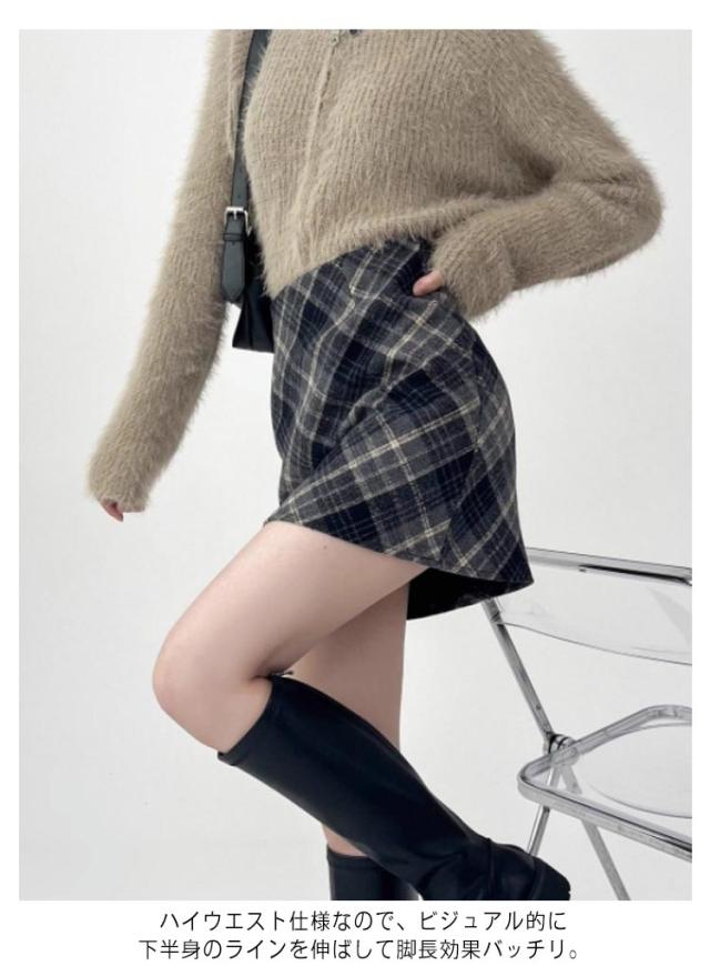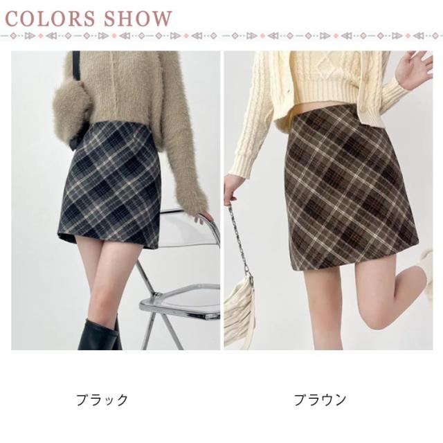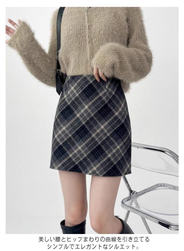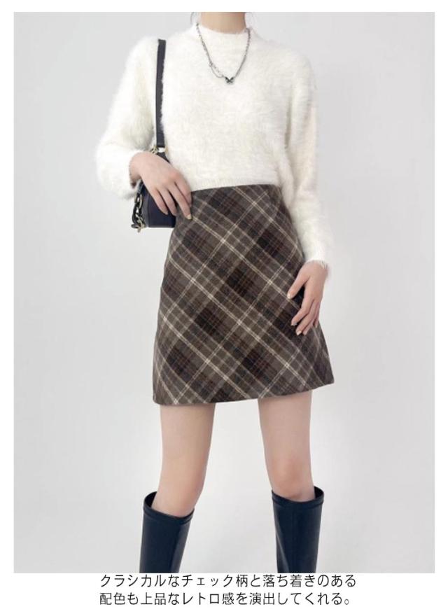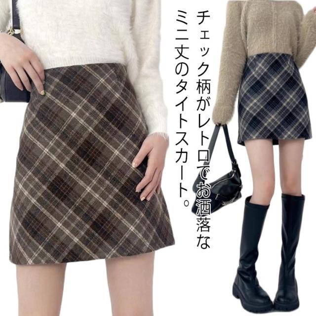 タイトスカート ミニ レディース 秋 冬 チェック Aライン 膝上丈 カジュアル ウール風生地 裏地付き きれいめ おしゃれ ガーリー フェミニン レトロ ミニスカ お出かけ 着回し 普段着 デート チェックスカート