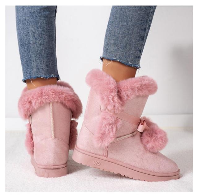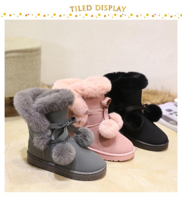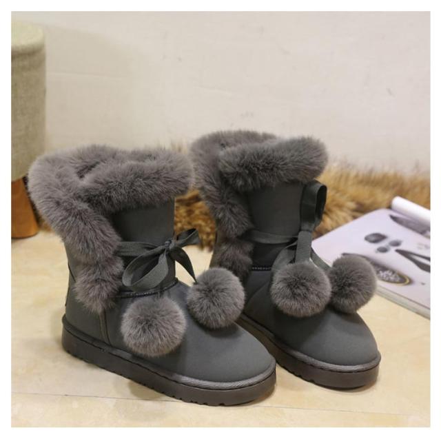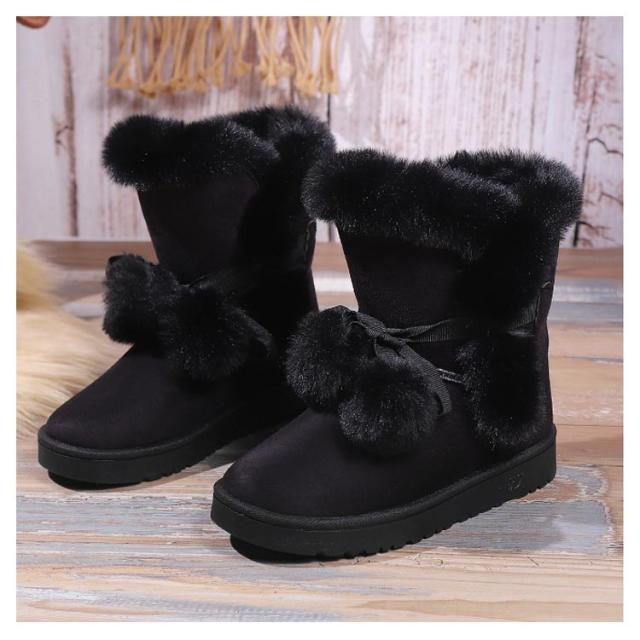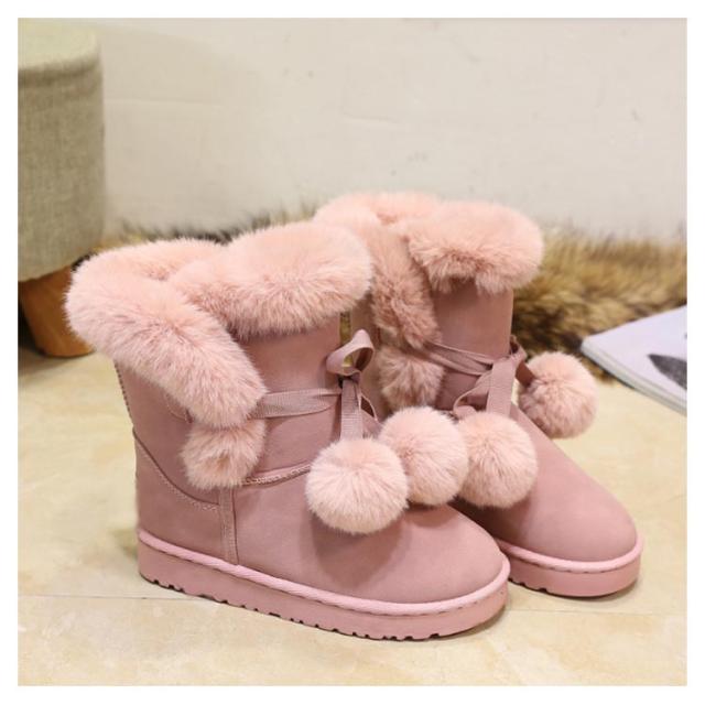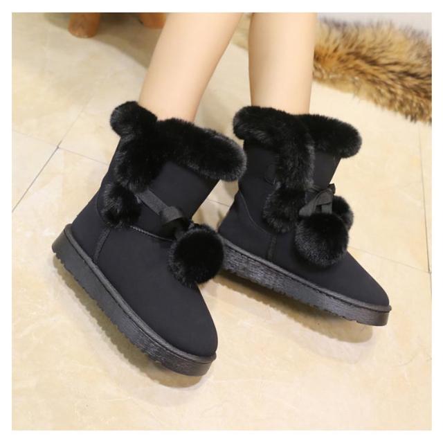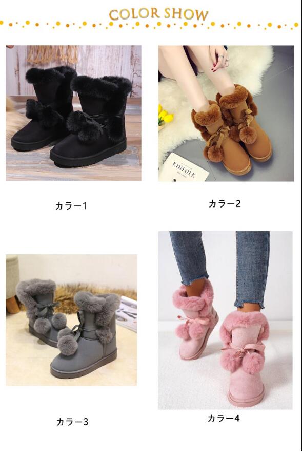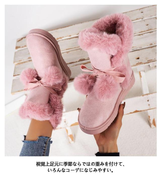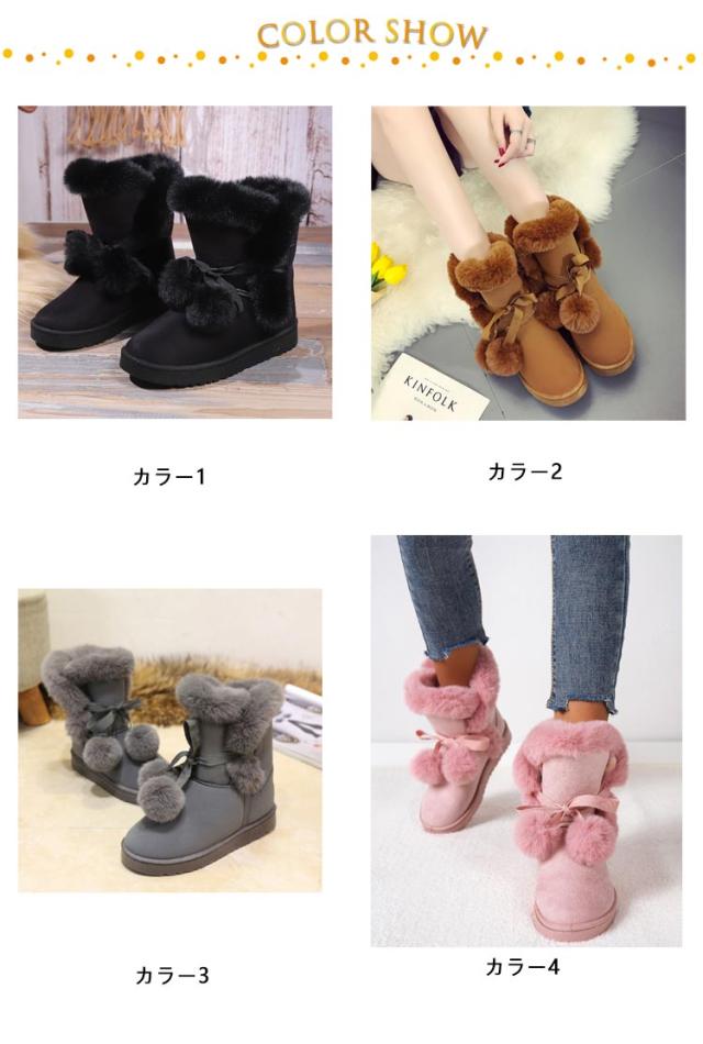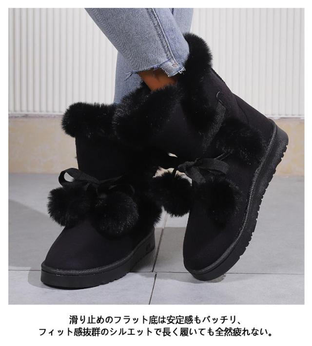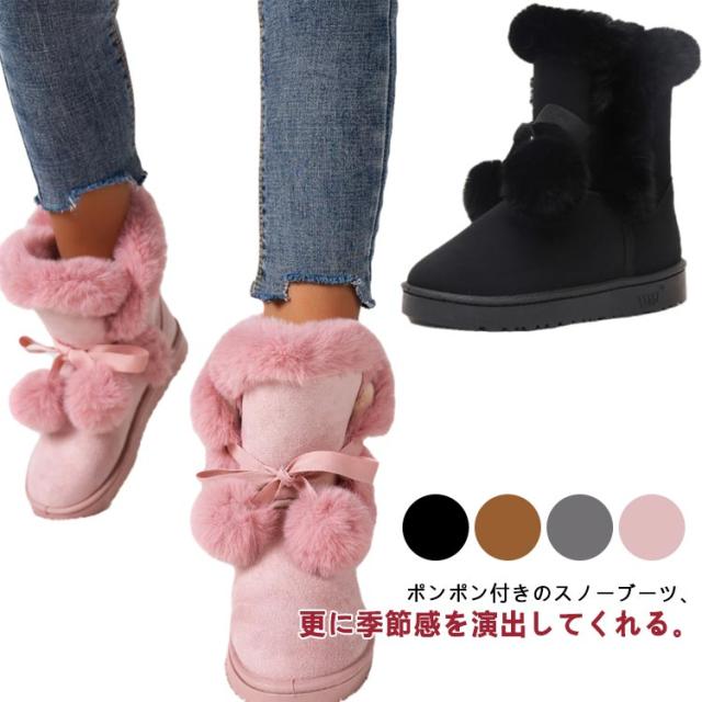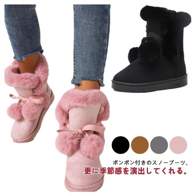 ポンポン付き ムートンブーツ レディース ショートブーツ スノーブーツ 靴 くつ 裏ボア ファー 冬 フェイクムートン 歩きやすい もこもこ 秋冬 かわいい 防滑 防寒 婦人靴 22.5cm 23.0cm 23.5cm 24.0cm 24.5cm 25.0cm 25.5cm