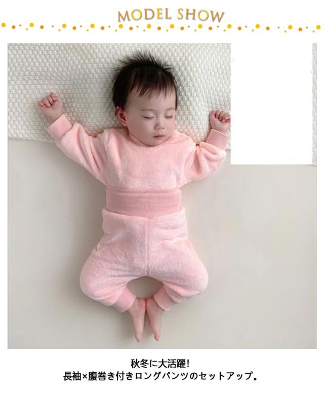 腹巻パジャマ キッズ 腹巻き付きパンツ 子供 女の子 男の子 ベビー ルームウェア もこもこ 上下セット ハイウェスト 長袖 子供服 子ども服 かわいい おしゃれ 秋 冬 部屋着 腹巻き ねまき かわいい 73cm 80cm 90cm 100cm 110cm