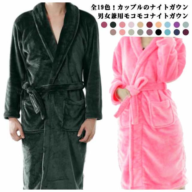 ナイトガウンレディース メンズ 男女兼用 カップル 厚手 ルームウェア パジャマ ふわふわ もこもこ 部屋着 ロング 秋 冬 ナイトガウン ナイトウェア パジャマ おしゃれ 寝間着 送料無料