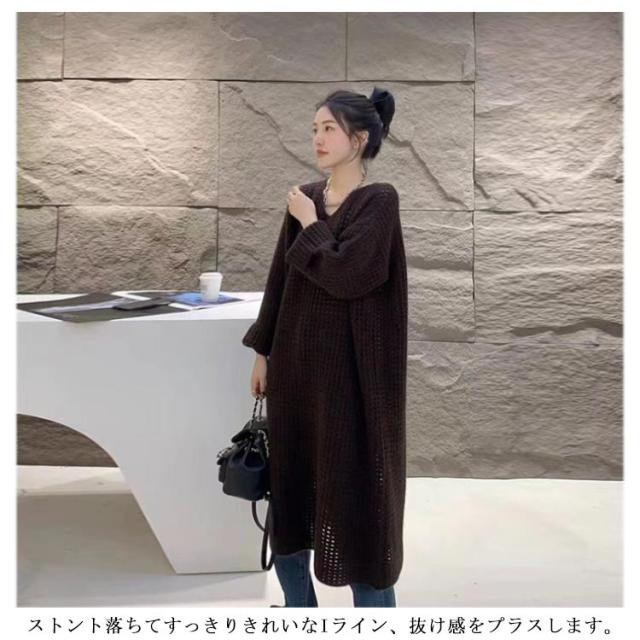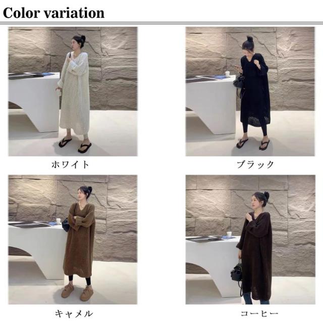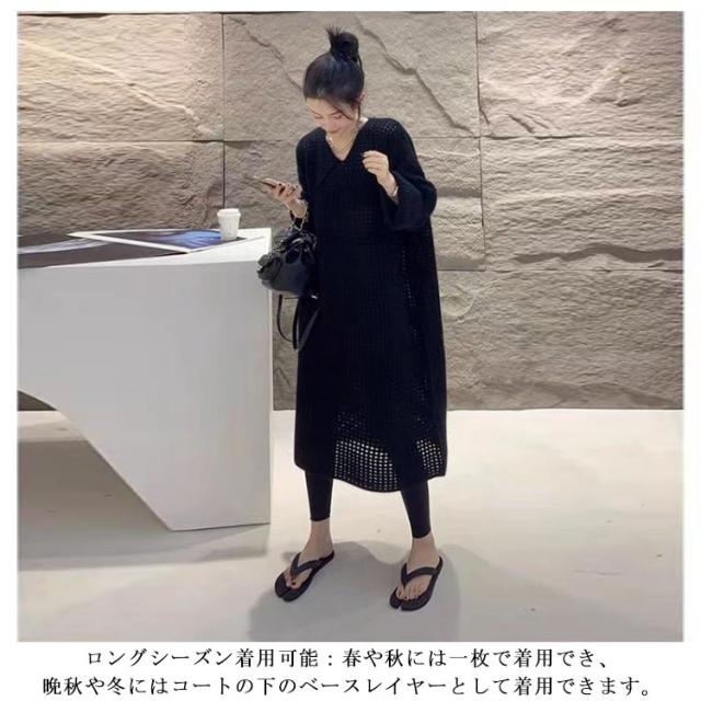 | シンプルなワンピースだけど、単調にならない立体感のあるニット編みデザイン ロングシーズン着用可能:春や秋には一枚で着用でき、晩秋や冬にはコートの下のベースレイヤーとして着用できます。 vネックで女性らしさたっぷり ストント落ちてすっきりきれいなIライン、抜け感をプラスします。 | |