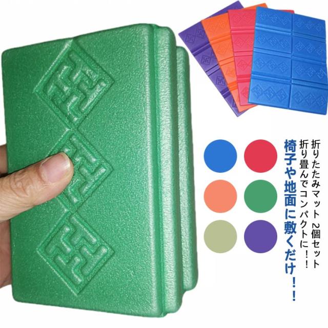 | 折りたたみマット 2個セット 折り畳んでコンパクトに!! 椅子や地面に敷くだけ!! アウトドアや、サウナ、釣り、スポーツ観戦などに最適!防災グッズとしてもお使い頂けます。 水辺でも使える防水素材 丸洗いOK!! | |