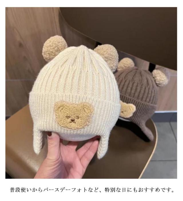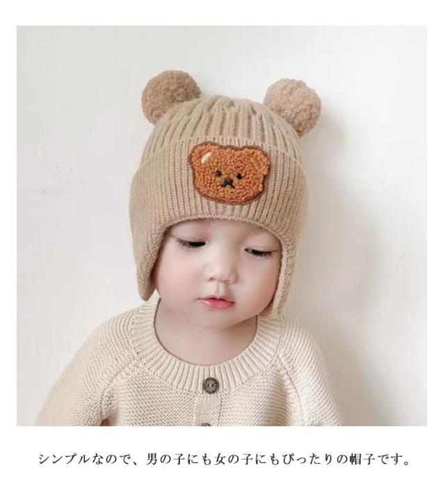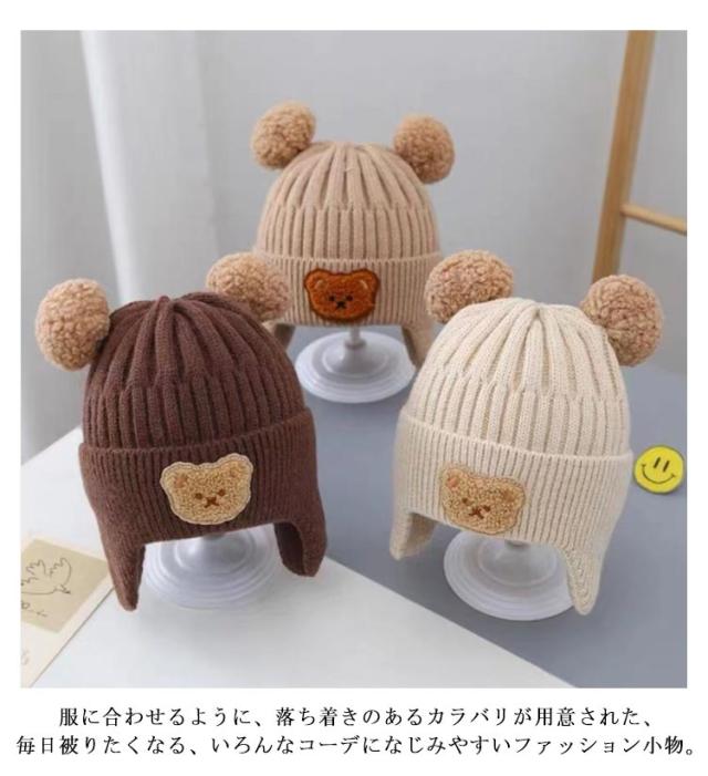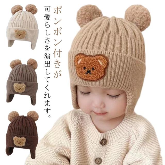 ニット帽子 キッズ 帽子 子供用 耳当て 防寒帽子 秋冬 防寒 熊 男の子 女の子 冬用ハット 男女兼用 耳保護付き 無地 柔らかい 暖かい かわいい 防風 保温 プレゼント 子供 3歳 4歳 5歳 6歳 ユニセックス 通学 通園 外遊び 公園 アウトドア