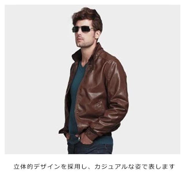 革ジャン メンズ ライダースジャケット レザージャケット ミリタリージャケット 裏起毛 レザーブルゾン アウター 立ち襟 スタジャン フェイクレザー スリム 軽い 暖かい 裏地 皮ジャン アウター ブルゾン ジップアップ 裏ボア 防寒 送料無料
