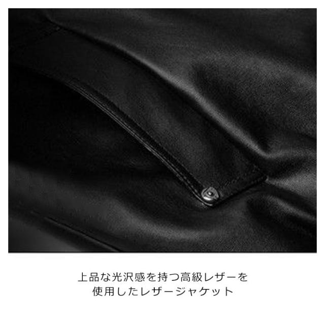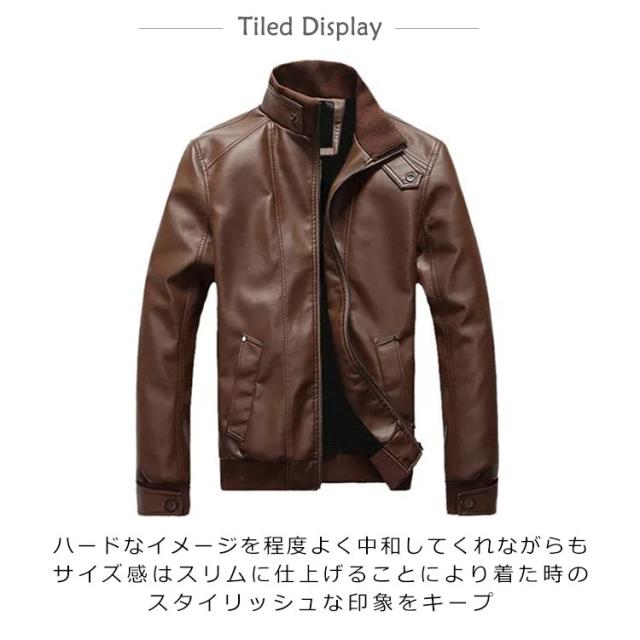 | 全6サイズ!裏起毛なし/裏起毛あり2タイプが選べる。気軽に着れるフェイクレザージャケット。 上品な光沢感を持つ高級レザーを使用したレザージャケット。 あったかな裏ボア素材使いで真冬の寒さ対策にも使える。 立体的デザインを採用し、カジュアルな姿で表します。 袖口と襟部分は伸縮性あるリブ切り替 ハードなイメージを程度よく中和してくれながらも、サイズ感はスリムに仕上げることにより着た時のスタイリッシュな印象をキープ。 | |