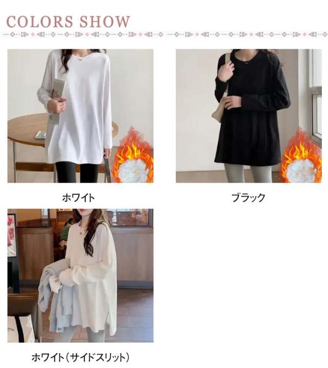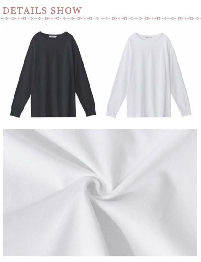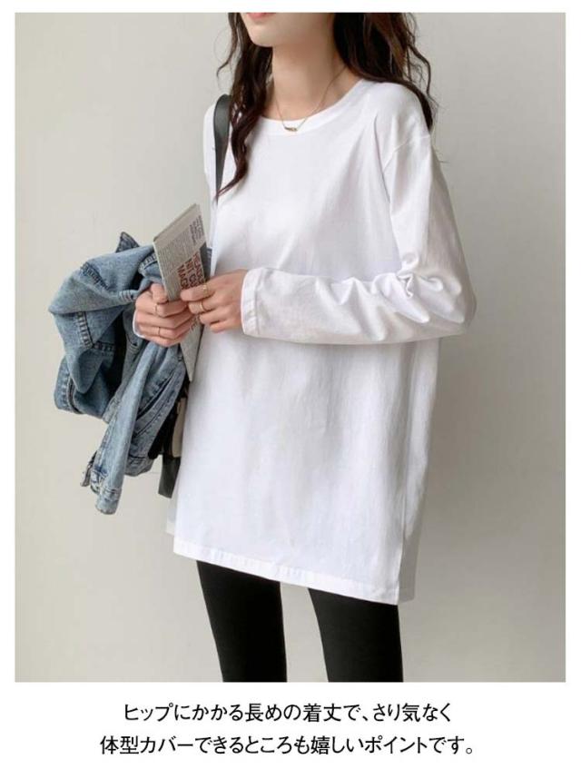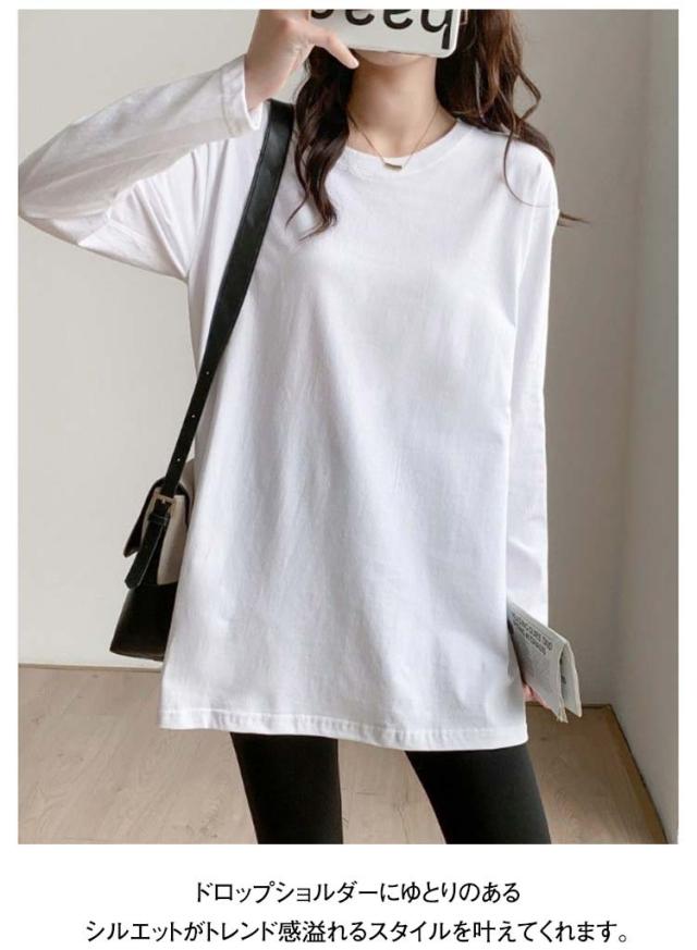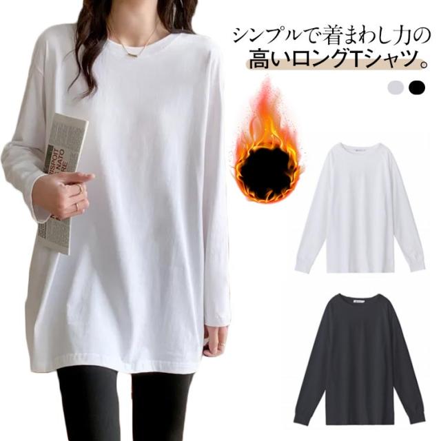 ロンT レディース トップス 長袖 ロングTシャツ 厚手 秋冬 インナー 無地 黒 白 シンプル ゆったり カジュアル 着回し 重ね着 カットソー 大きいサイズ 白tシャツ おしゃれ