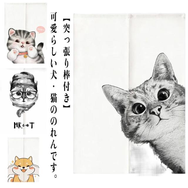 【突っ張り棒付き】 のれん 暖簾 犬柄 猫柄 北欧 ロング丈 おしゃれ 間仕切り 仕切りカーテン 目隠し 部屋仕切り 玄関 部屋 脱衣所 洗面所 猫 ねこ にゃんこ いぬ カーテン 遮像 遮光 つっぱり棒 模様替え 新生活 おしゃれ かわいい 和風 お店 入り口 子供部屋 送料無料