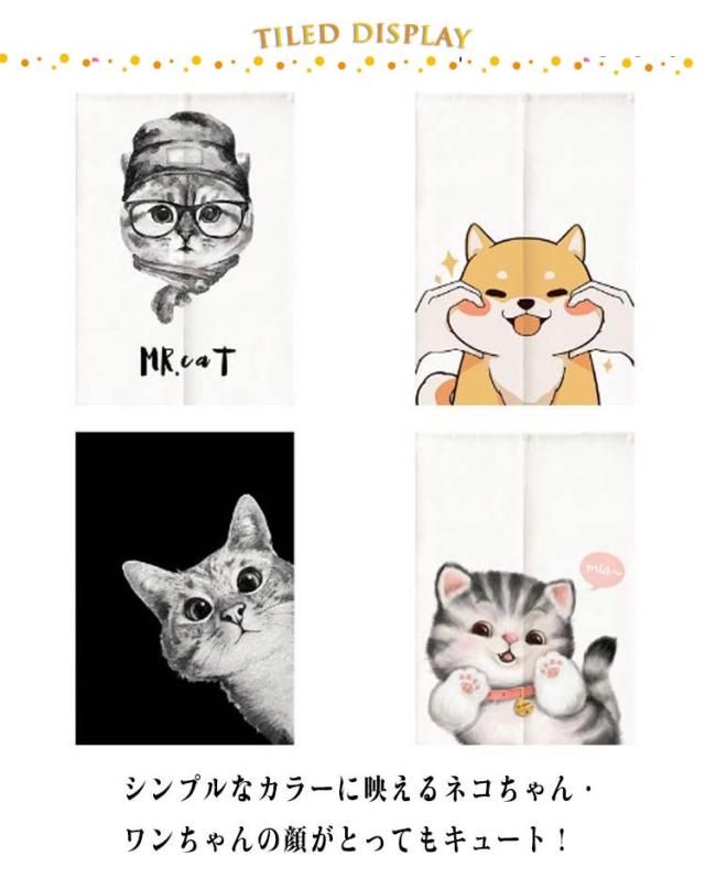| 【突っ張り棒付き】可愛らしい犬・猫ののれんです。 シンプルなカラーに映えるネコちゃん・ワンちゃんの顔がとってもキュート! 使いたいお部屋のイメージに合わせて9タイプからお選びいただけます。 手触りのよい軽やかな生地で重くなりすぎずカジュアルな雰囲気に。 付属のつっぱり棒で簡単に取り付けられるので模様替えも簡単。 【こんな使い方ができます】 玄関やキッチン、収納棚などに掛けて目隠しに 扉がない部屋の間仕切りに 広すぎる部屋を仕切って省エネ、節電に お店の営業中の合図に ドアプレート、ルームプレート替わりに お部屋の装飾に 模様替えに | |