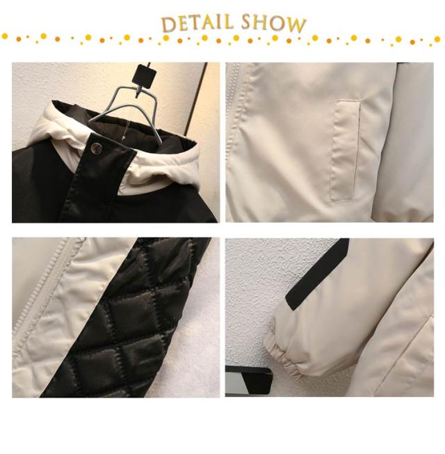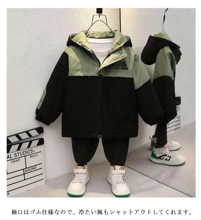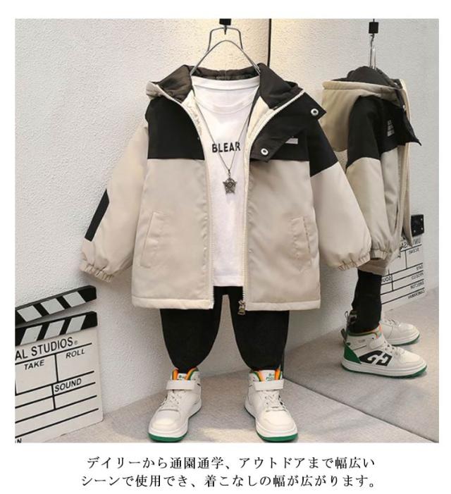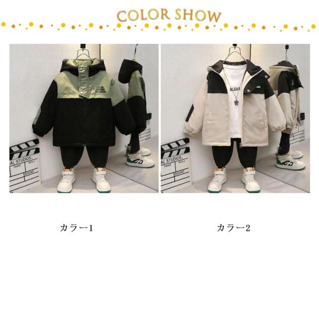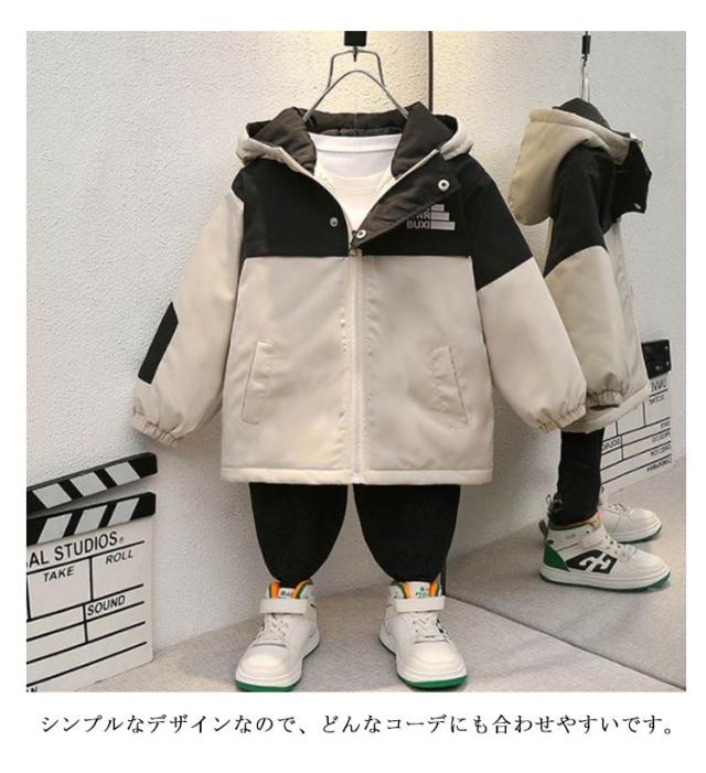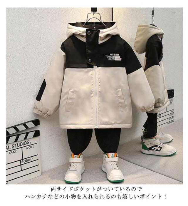 中綿入り マウンテンパーカー 男の子 配色 ジャケット アウター キッズ 子供服 小学生 ウィンドブレーカー ジップアップジャケット フード付き 薄手 防風 軽量 秋冬 普段着 90cm 100cm 110cm 120cm 130cm 140cm 150cm