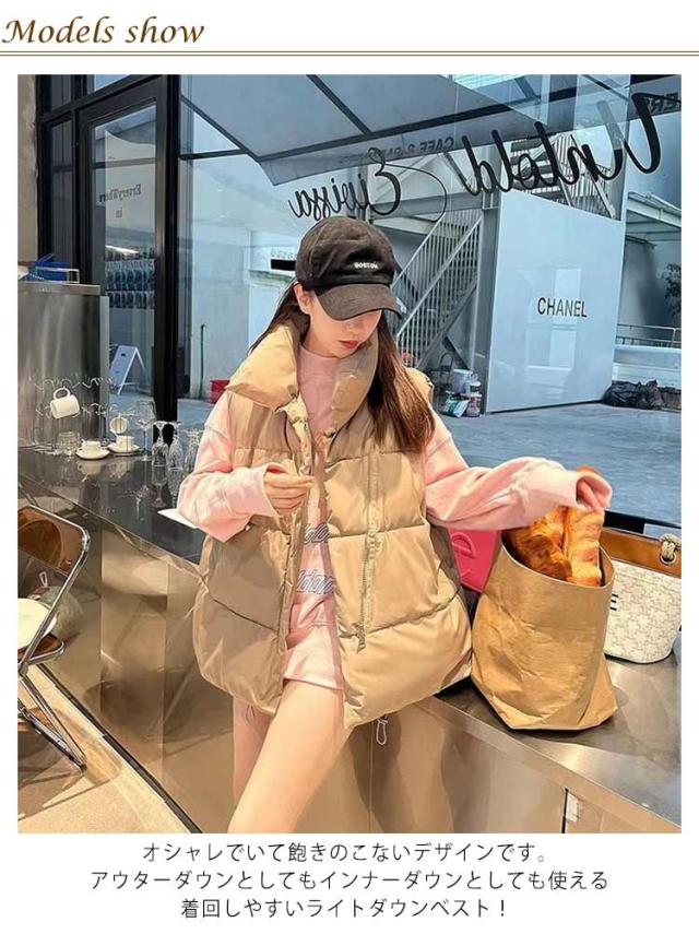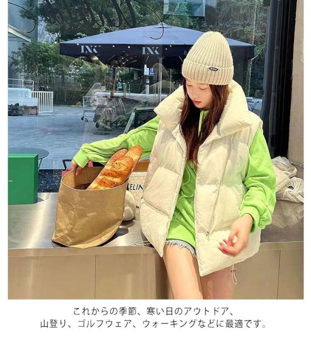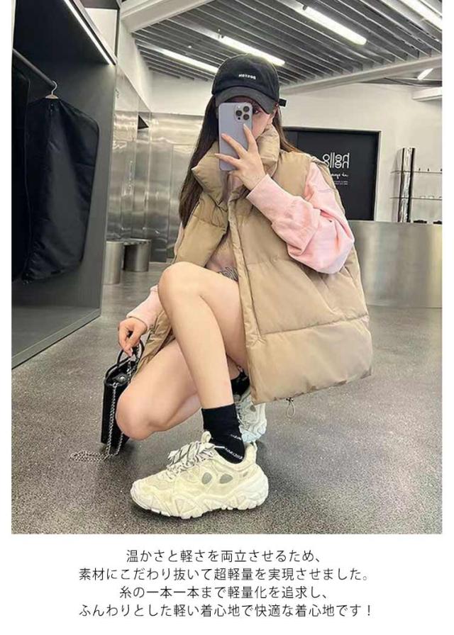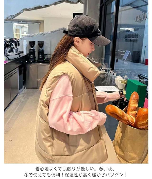 ダウンベスト レディース 中綿ベスト ライトアウター 前開き 秋冬 キルティング 大きいサイズ トップス 羽織り 厚手 防寒 軽量 ノースリーブ ポケット付き 通勤 通学 韓国 レイヤード 重ね着 ゆったり ふわふわ カジュアル 送料無料