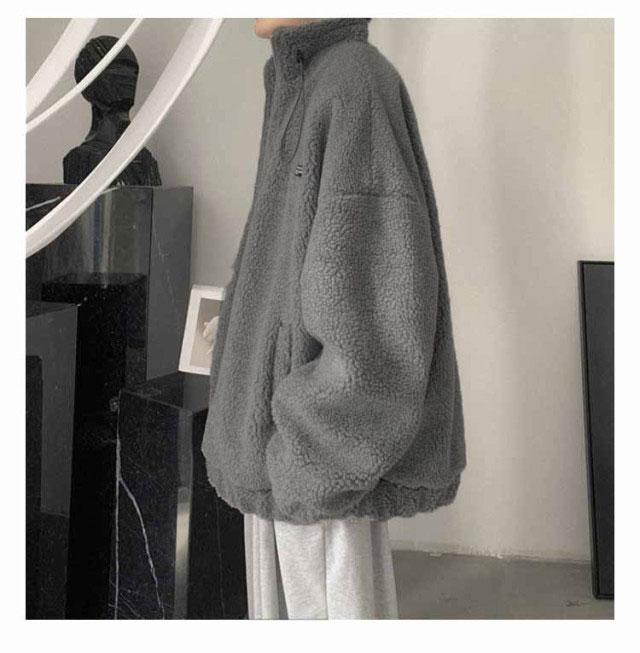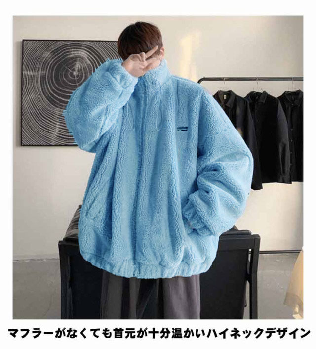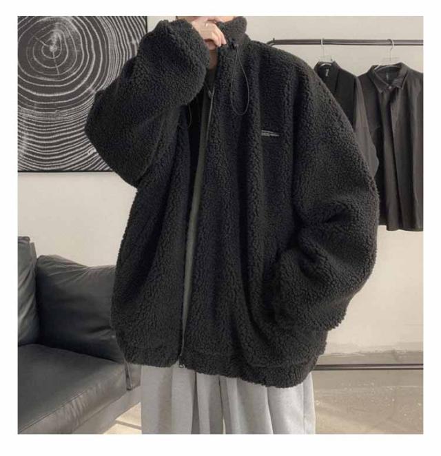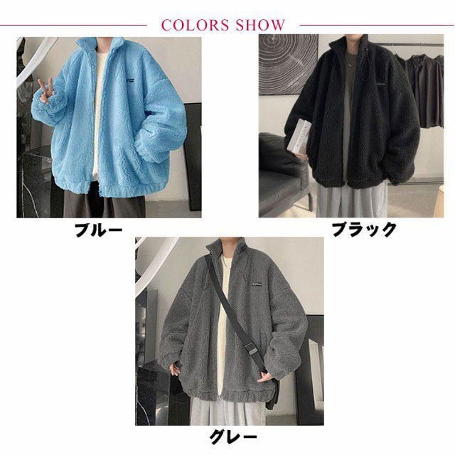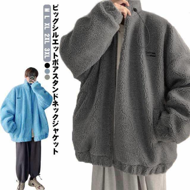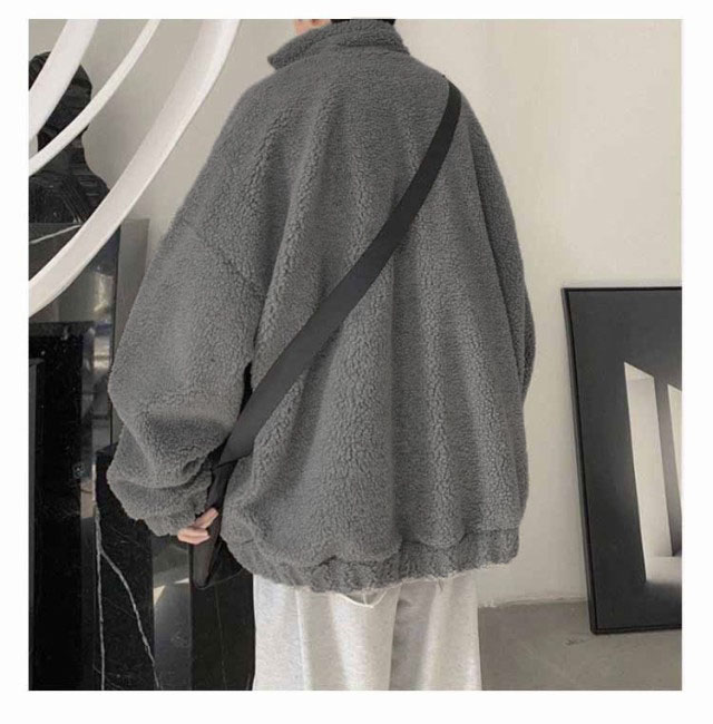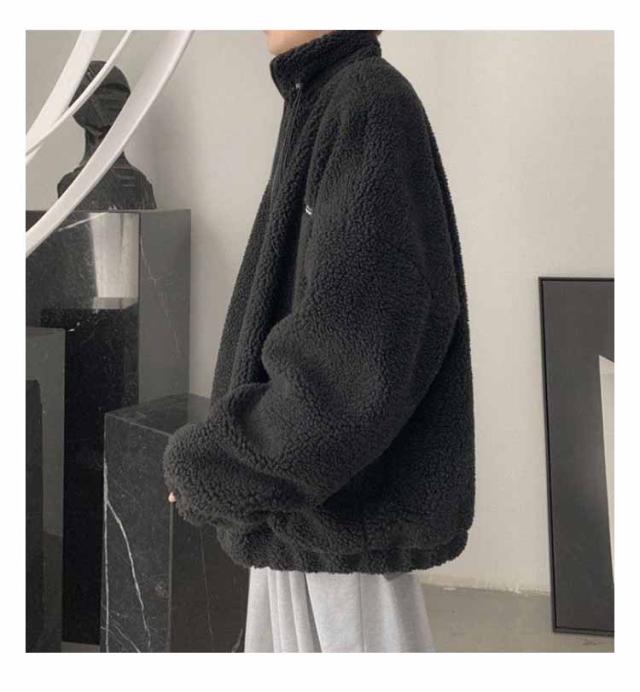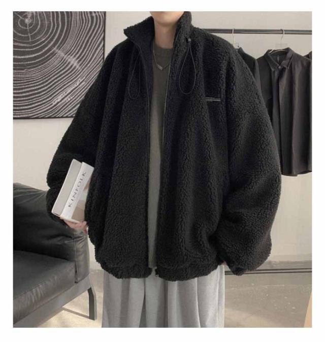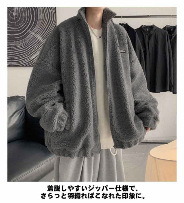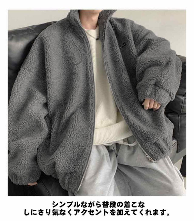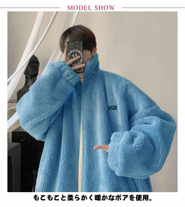 ボアジャケット メンズ ボアブルゾン ボア フリース ジャケット ブルゾン スタンドカラー 立ち襟 オーバーサイズ 秋 冬 アウター 上着 もこもこ 厚手 秋服 冬服 防寒 暖かい ジップアップ ボアパーカー 韓国 学生 カジュアル おしゃれ あたっか 【送料無料】