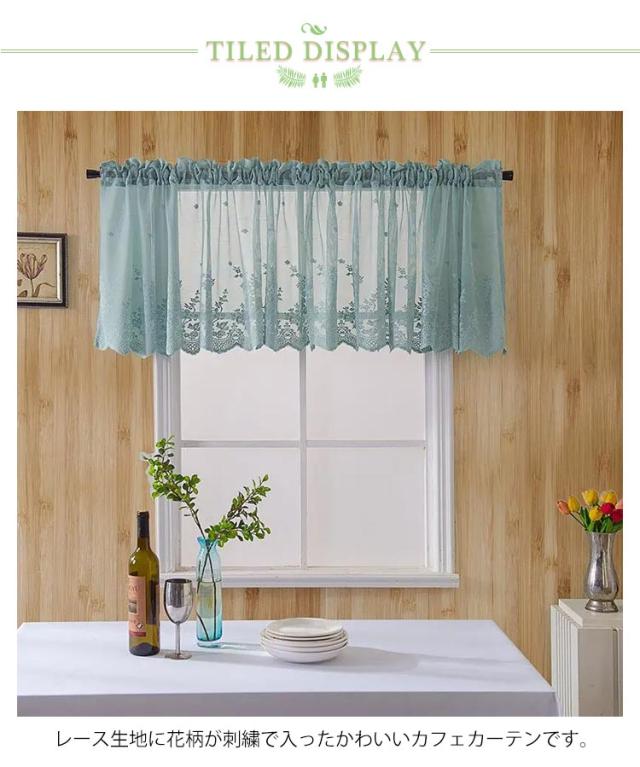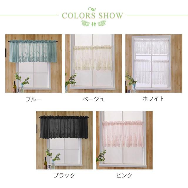 カフェカーテン レース 花柄 刺繍 おしゃれ 北欧 小窓用 カフェ カーテン 目隠し UVカット 遮熱 ホワイト ベージュ ブルー ブラック ピンク 出窓 小窓 レースカーテン 突っ張り式 模様替え リビング キッチン エレガント シンプル 新生活 部屋アレンジ プレゼント 送料無料