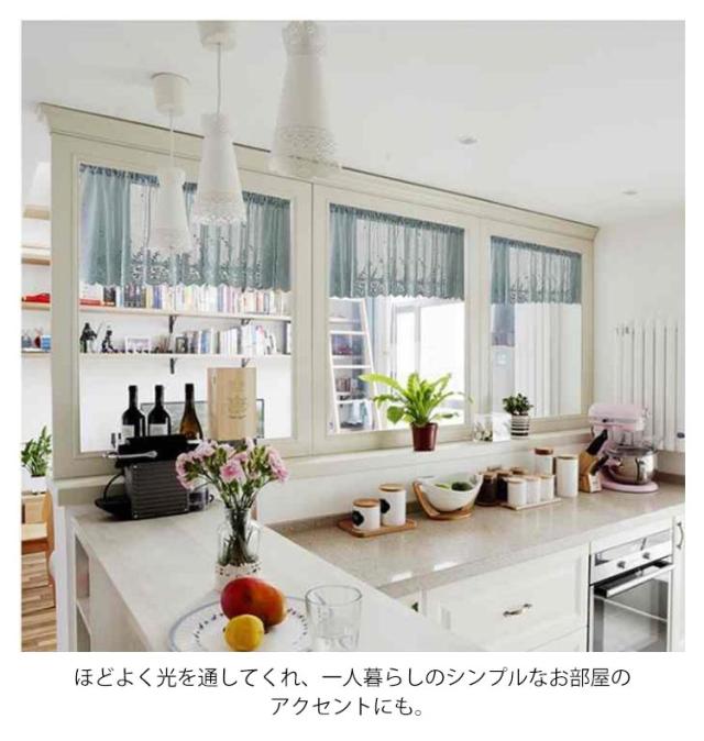 | レース生地に花柄が刺繍で入ったかわいいカフェカーテンです。 ほどよく光を通してくれ、一人暮らしのシンプルなお部屋のアクセントにも。 キッチンやトイレの小窓などちょっとした目隠しをしたいという時などにぴったり。 子供部屋や、リビング、キッチンなどの窓辺がぱっと明るくなります。 つっぱり棒で簡単に取り付けられるので模様替えも簡単。(つっぱり棒は別売りです) | |