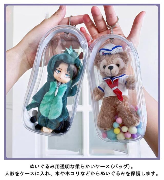 ぬいぐるみ ケース フィギュア ポーチ 痛バッグ 防塵 人形入れ 透明 クリア バッグ 汚れ防止 ぬいぐるみポーチ ビニールバッグ 収納 持ち運び 推し キャラクター アニメ 痛バ お出かけ 見せバッグ ファスナー 大容量 キーホルダー バッグ チャーム