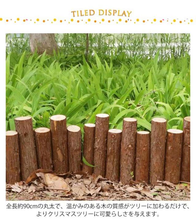 | ツリーの足元を覆う定番のログフェンス。 全長約90cmの丸太で、温かみのある木の質感がツリーに加わるだけで、よりクリスマスツリーに可愛らしさを与えます。 クリスマスツリーの脚カバーとしてだけでなく、観葉植物の鉢カバーとしても最適です。 クリスマスツリーの足元にクリスマスツリーの寂しい足元をおしゃれに隠すことが出来ます。 ツリーを飾らない時期にも、植木鉢の目隠しとして楽しめます。 本物の丸太を使用しているので、足元からクリスマスツリーが綺麗に見えます。 ウッドフェンスひとつで、簡単に北欧風ツリーの雰囲気が味わえます。 | |