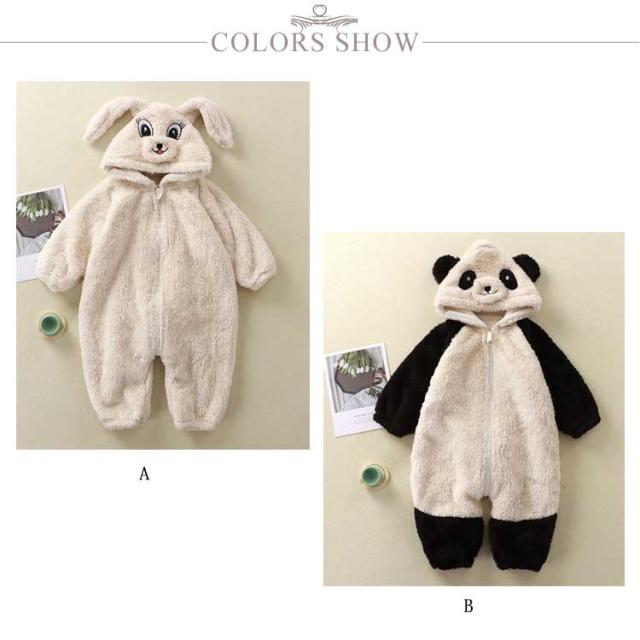 長袖ロンパース カバーオール 赤ちゃん ベビー 子供服 長袖 前開き ボア 起毛 ベビー ロンパース ウサギ パンダ 耳付き フード付き 着ぐるみ 女の子 男の子 前開き 暖かい ベビー服 カバーオール 可愛い 出産祝い プレゼントもこもこ 防寒 可愛い コーデ 柔らかい 秋 冬
