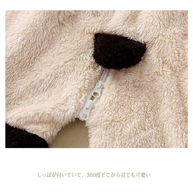| 66cm 73cm 80cm 90cm フワフワもこもこシルエットに耳付きフードが可愛い♪ しっぽが付いていて、360度どこから見ても可愛い 前開きタイプでで着脱簡単!ベビー用のロンパースです。 出産祝いなどのギフトとしてもオススメ ふわふわモコモコで暖かく、冬に最善の選択をしなければならない。 | |